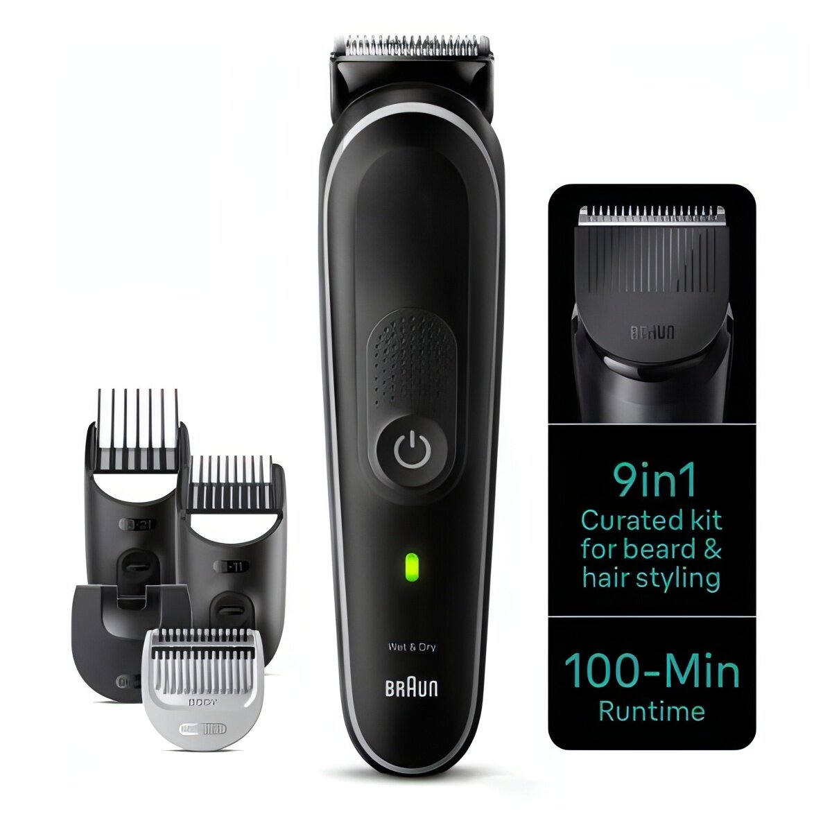 Триммер для бороды Braun Series 5 MGK5410 BLK/GREY универсальный, фиксированные и выдвижные гребни, триммер для носа и ушей, насадка для точного стайлинга, серый интересное: