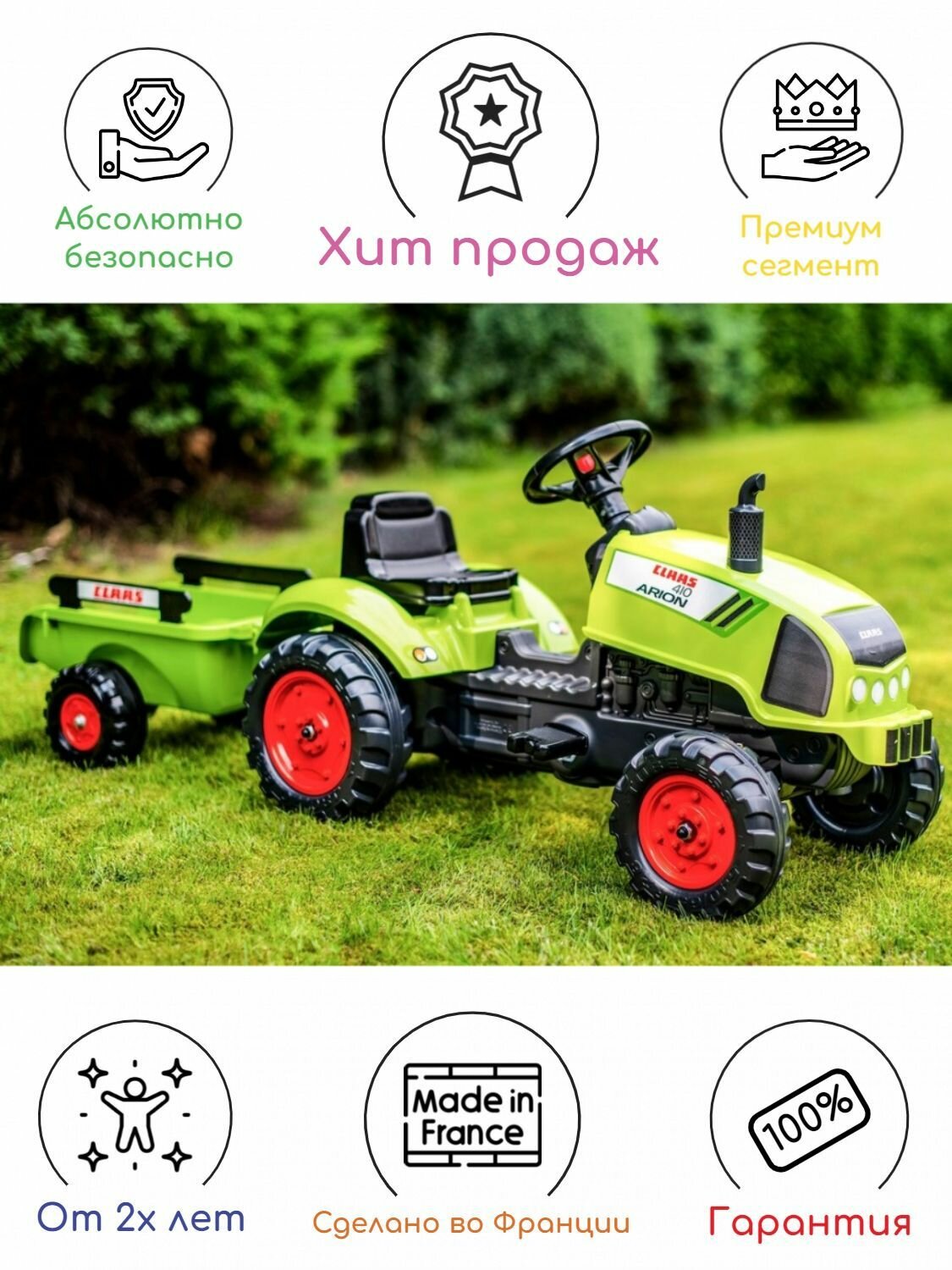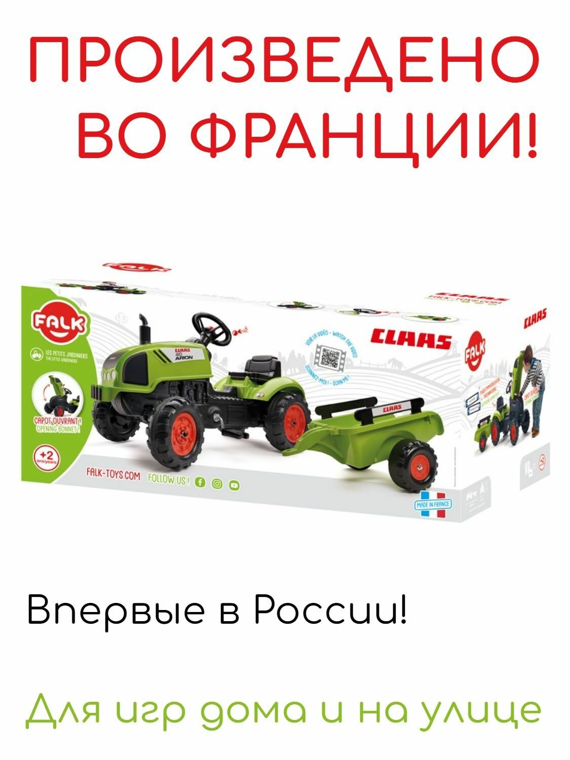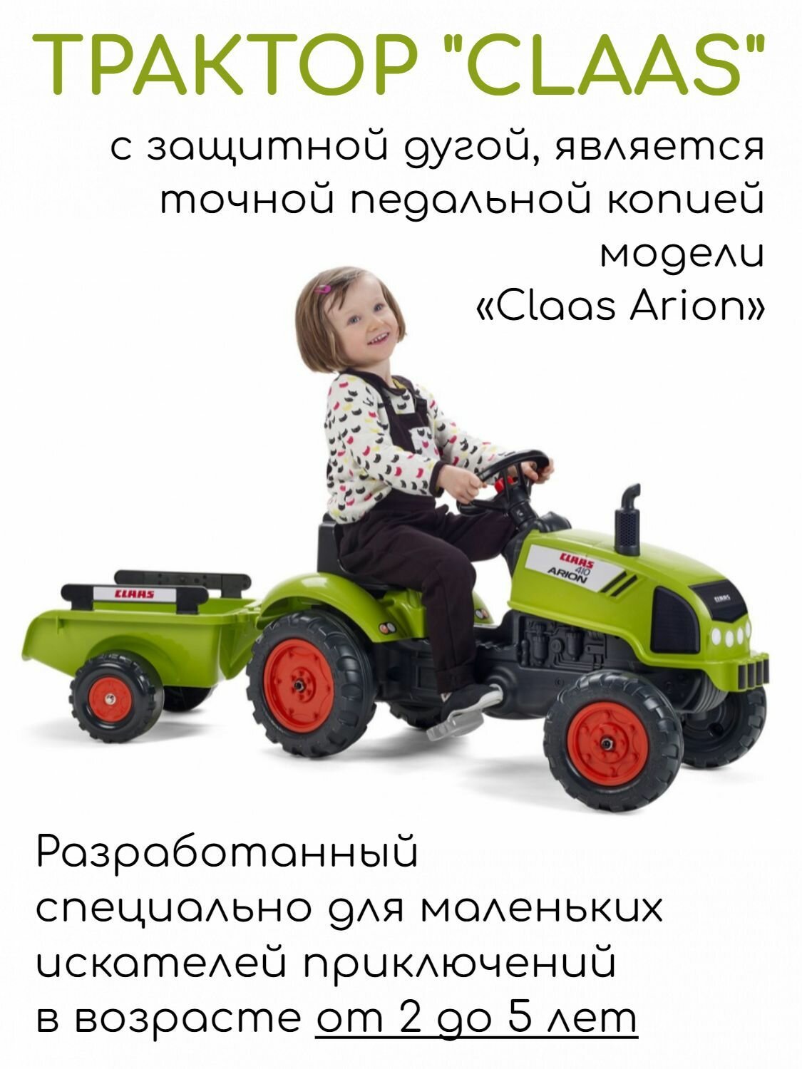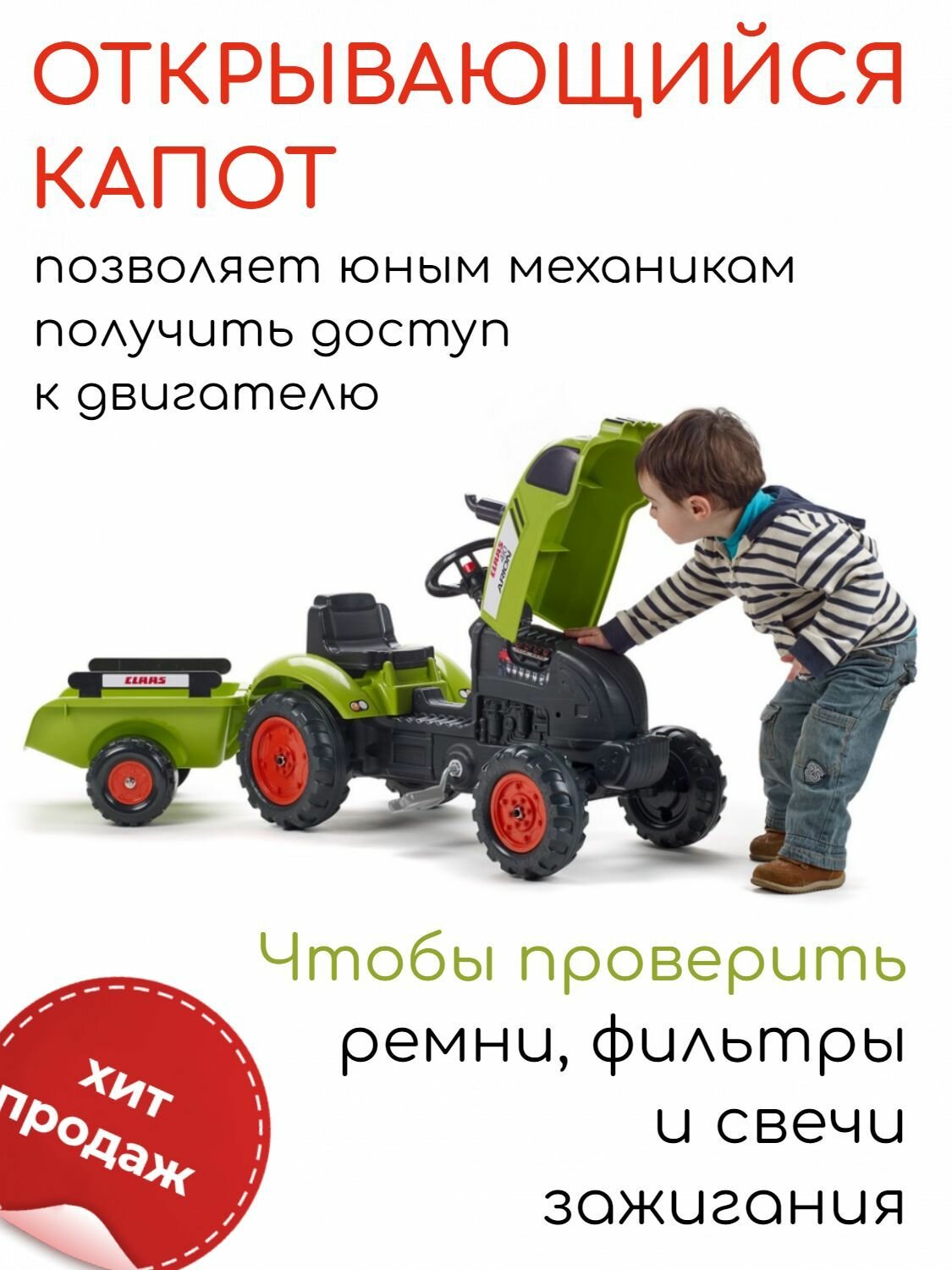 Купить Трактор Claas FALK с педалями, открывающимся капотом и прицепом