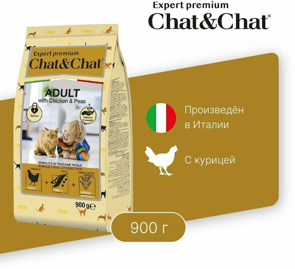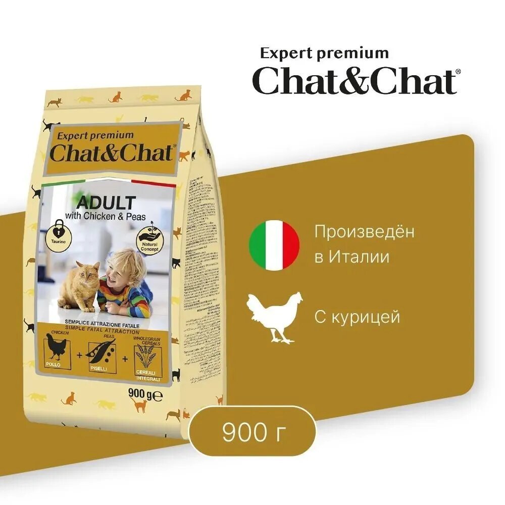 Корм сухойChat&Chat Expert Premium с курицей и горохом для взрослых кошек 900 г
