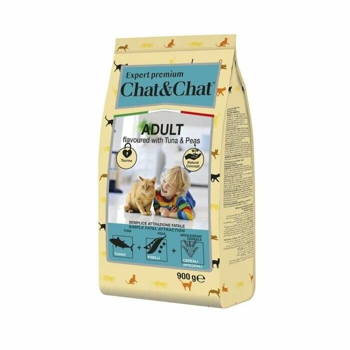 Купить Chat&Chat Expert Premium Сухой корм со вкусом тунца и горохом для взрослых кошек 900 г