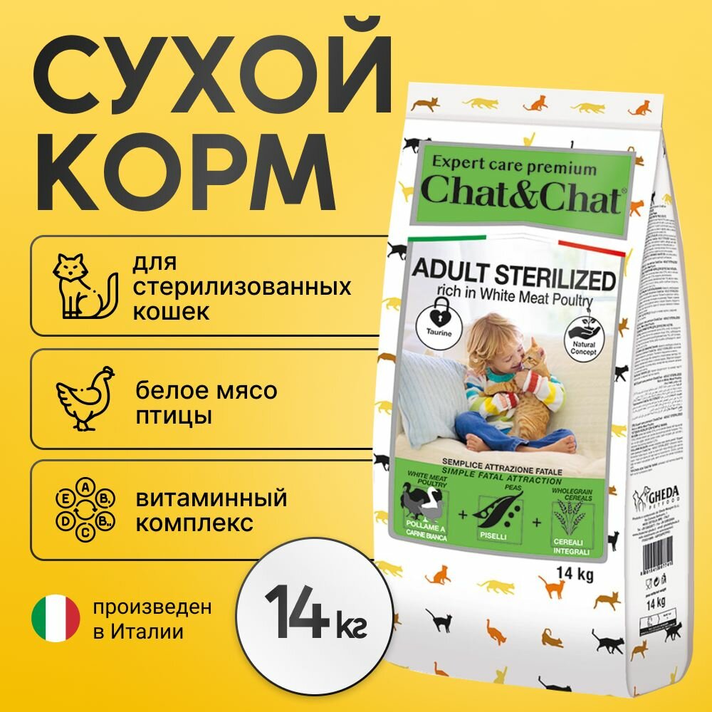 Chat&Chat Expert Premium Сухой корм с белым мясом птицы для стерилизованных кошек 14 кг