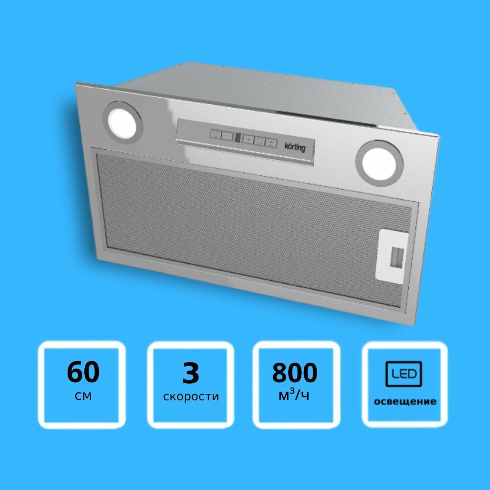 Вытяжка Korting KHI 6755 X, встраиваемая, серебристый, 800м3/ч, электронное управление