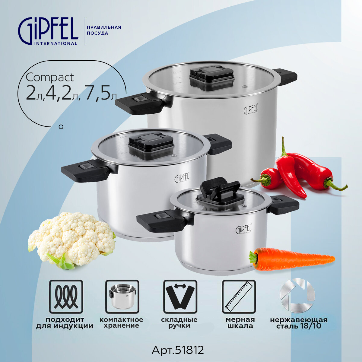 Купить Набор посуды Gipfel Compact 51812 6 предметов стальной/черный