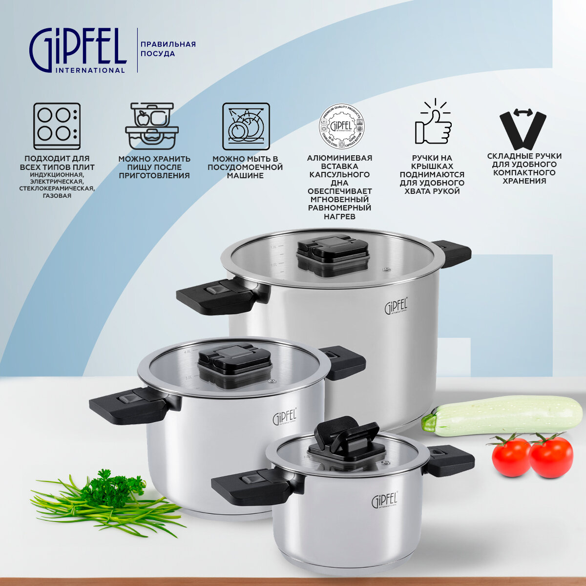 Набор посуды Gipfel Compact 51812 6 предметов стальной/черный интересное: