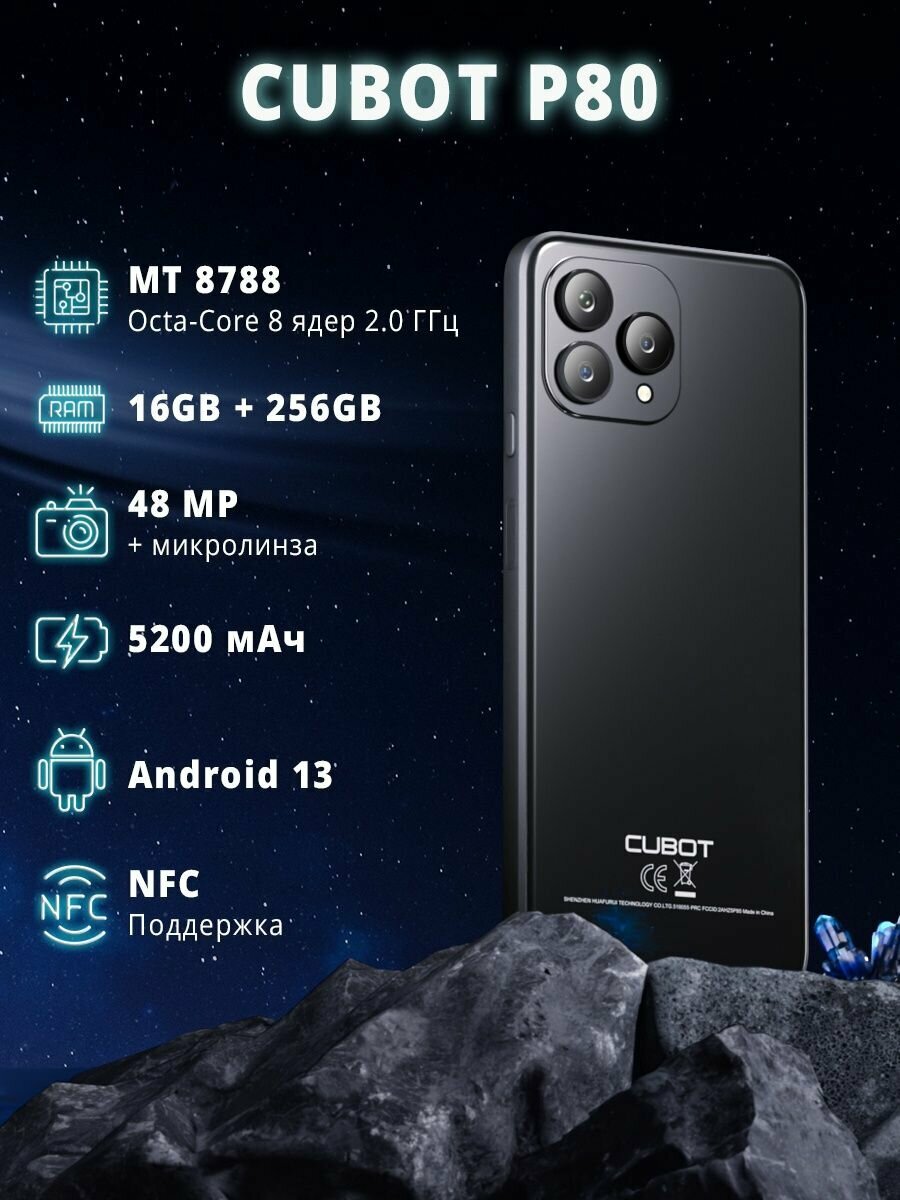 Смартфон Cubot P80, 8/256ГБ, global, Cubot, P80, Смартфон, Черный, 8ГБ, 256ГБ, global, Новый, 01.04.2023