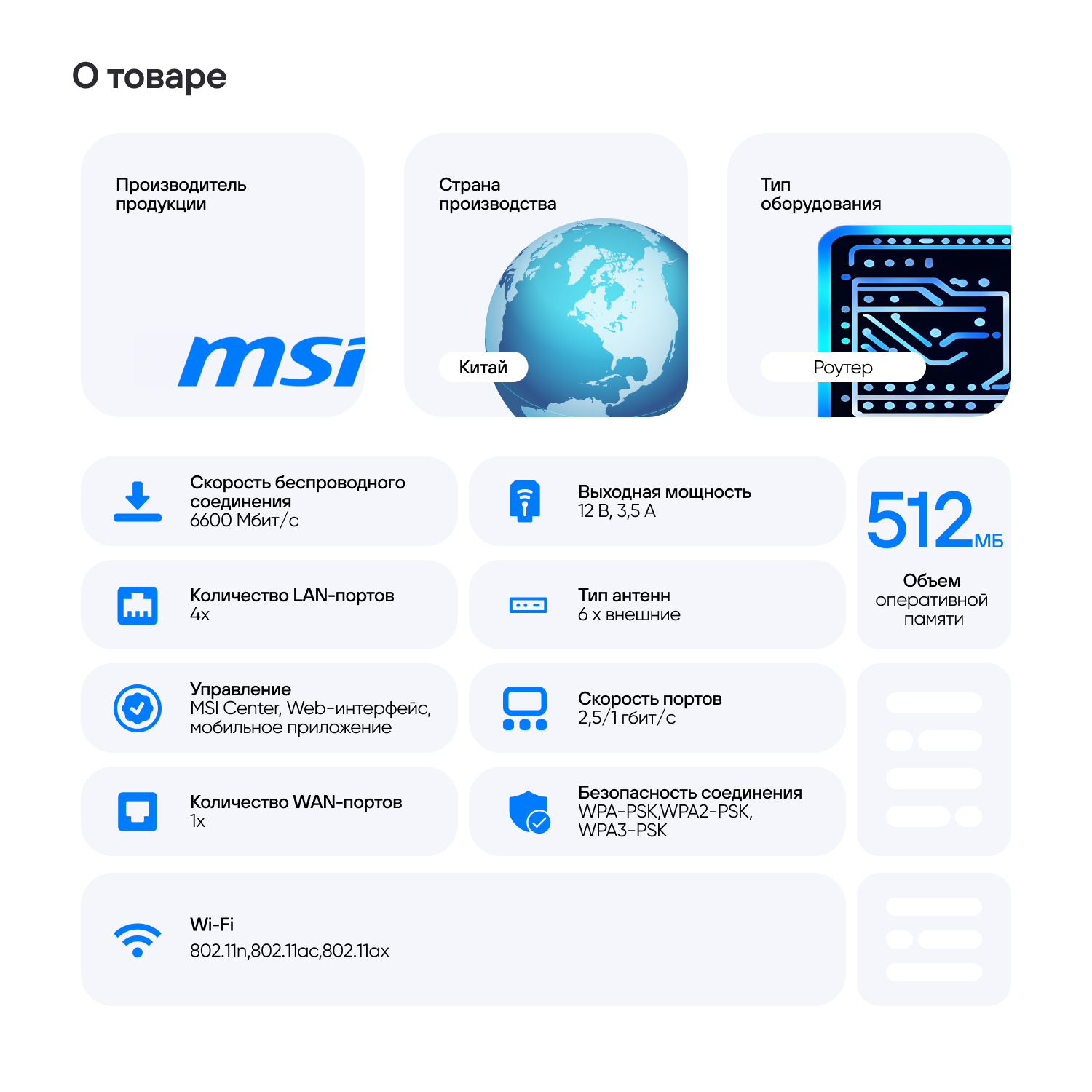 Роутер MSI AX6600 WI-FI 6 4хLAN 1хWAN MU-MIMO до 6600 Мбит/с интересное: