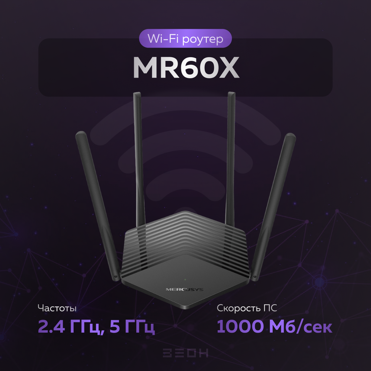 Wi-Fi роутер MERCUSYS MR60X, AX1500, черный