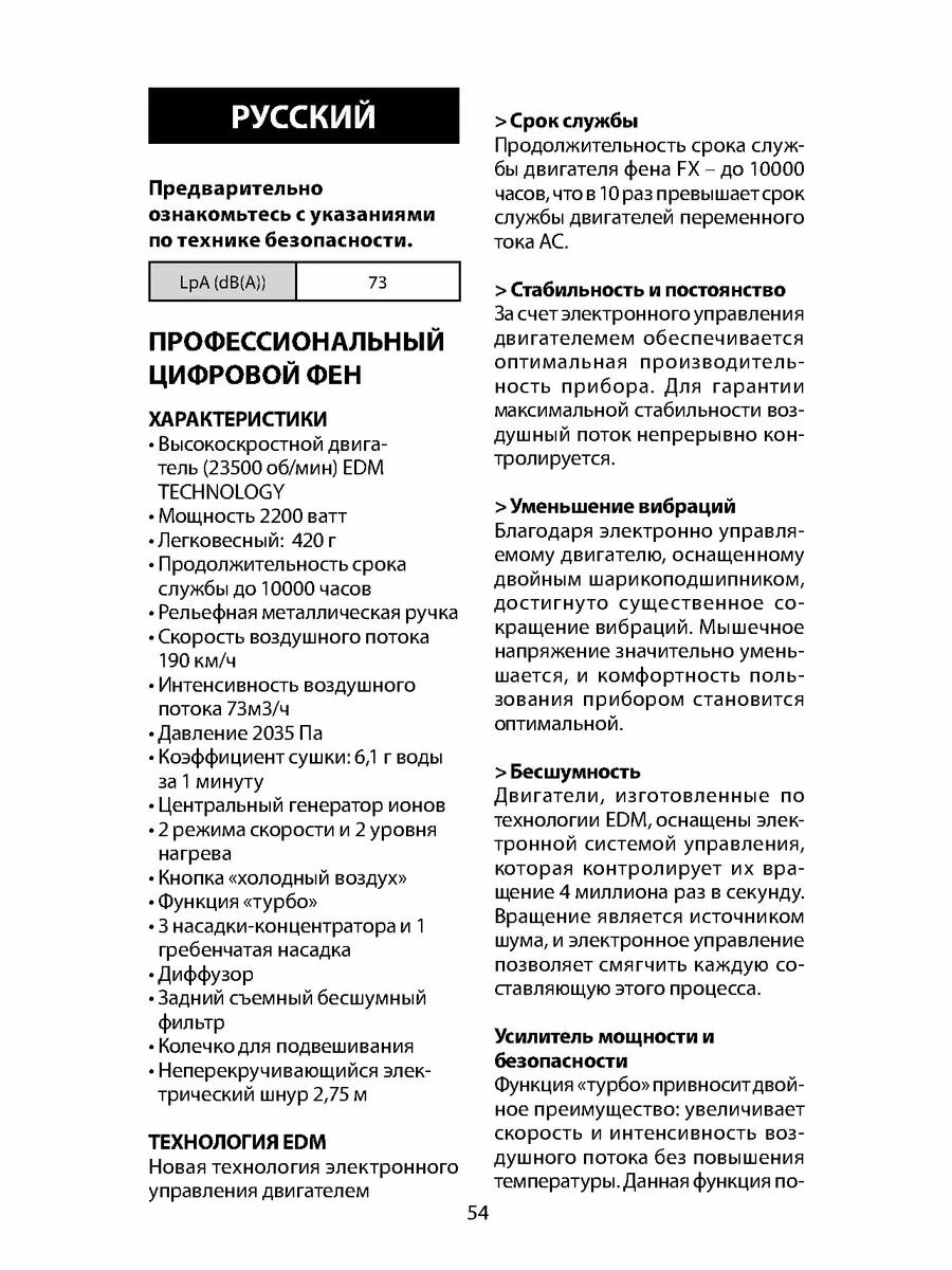 | Дополнительные функции | ионизация / подача холодного воздуха / ИонизацияХолодный воздух |