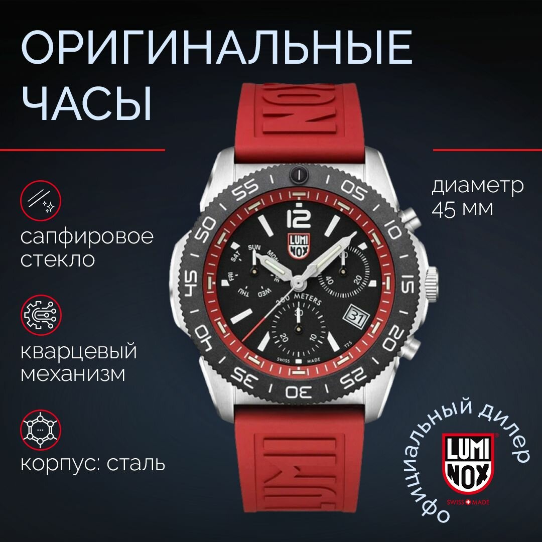 Часы мужские наручные Luminox Pacific Diver Chronograph XS.3155. Наручные кварцевые часы. Часы для мужчин производства Швейцарии интересное: