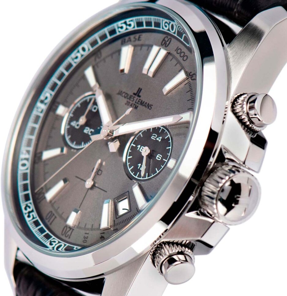 Наручные часы Jacques Lemans 1-2117Q, мужские кварцевые спортивные часы Жак Леман с хронографом и датой на комбинированном ремне (силикон и кожа) интересное: