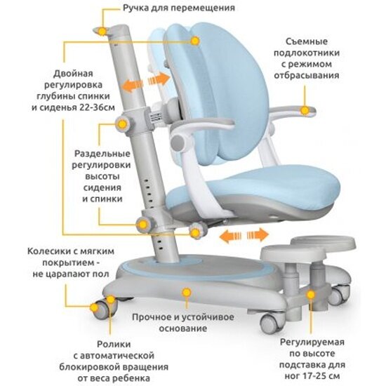 Купить Детское кресло Mealux Ortoback Duo Plus Blue (арт. Y-510 KBL Plus) голубой