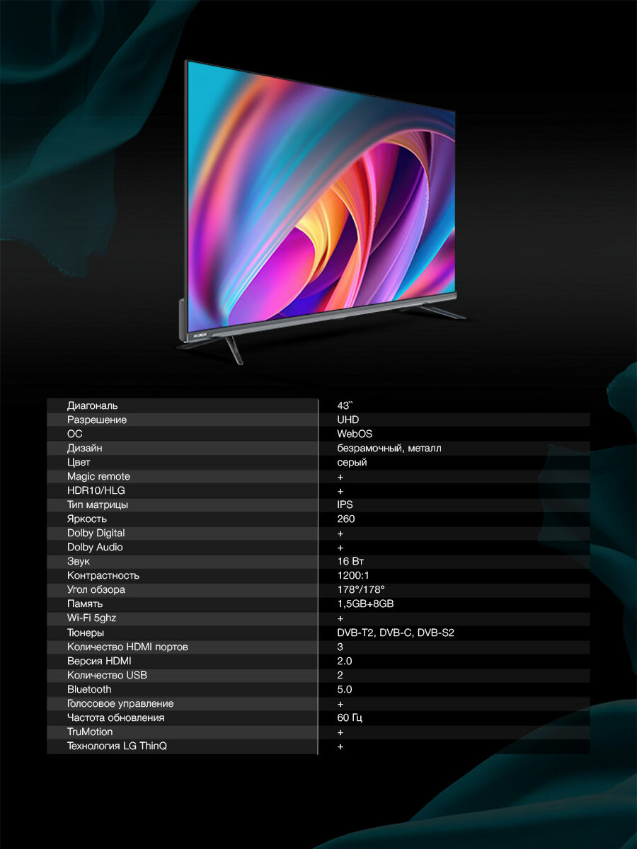 СохранитьТелевизор LED Hyundai WebOS H-LED43BU7100 серый интересное: