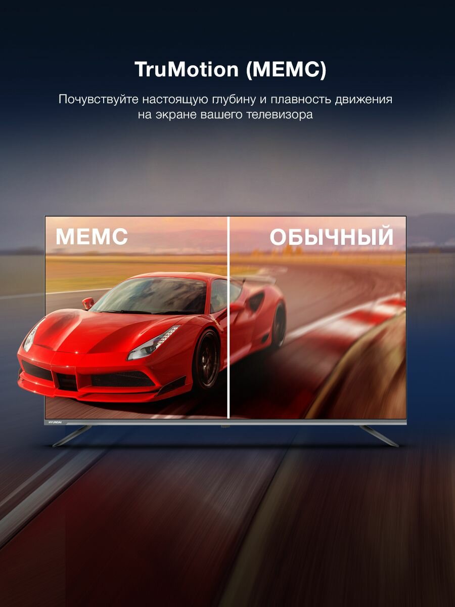 Телевизор Hyundai H-LED65OBU7700 Android TV 4K UHD разрешение 3840x2160 65 частота обновления 120 HDR 900 кд/м2 178 градусов 1500:1