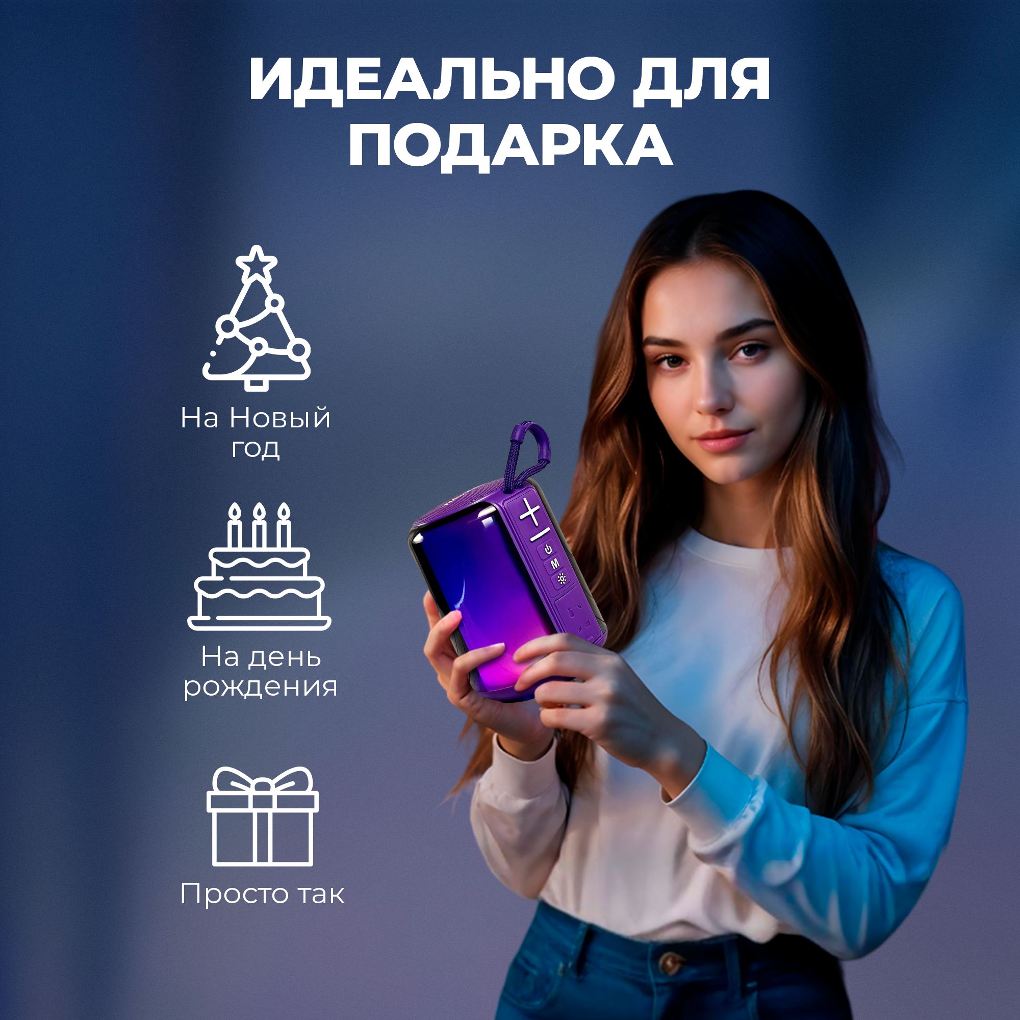 Купить Портативная колонка, 5Вт, RGB-подсветка, TWS, Bluetooth 5.3, колонка блютуз, колонка jbl, bluetooth колонка, фиолетовая
