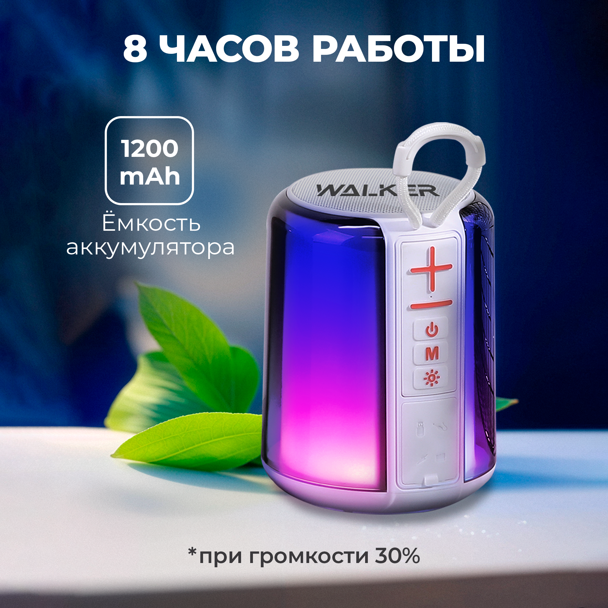 Портативная колонка, WALKER, WSP-125, 5Вт, RGB-подсветка, TWS, Bluetooth 5.3, колонка блютуз, колонка jbl, jbl колонка, bluetooth колонка, синяя