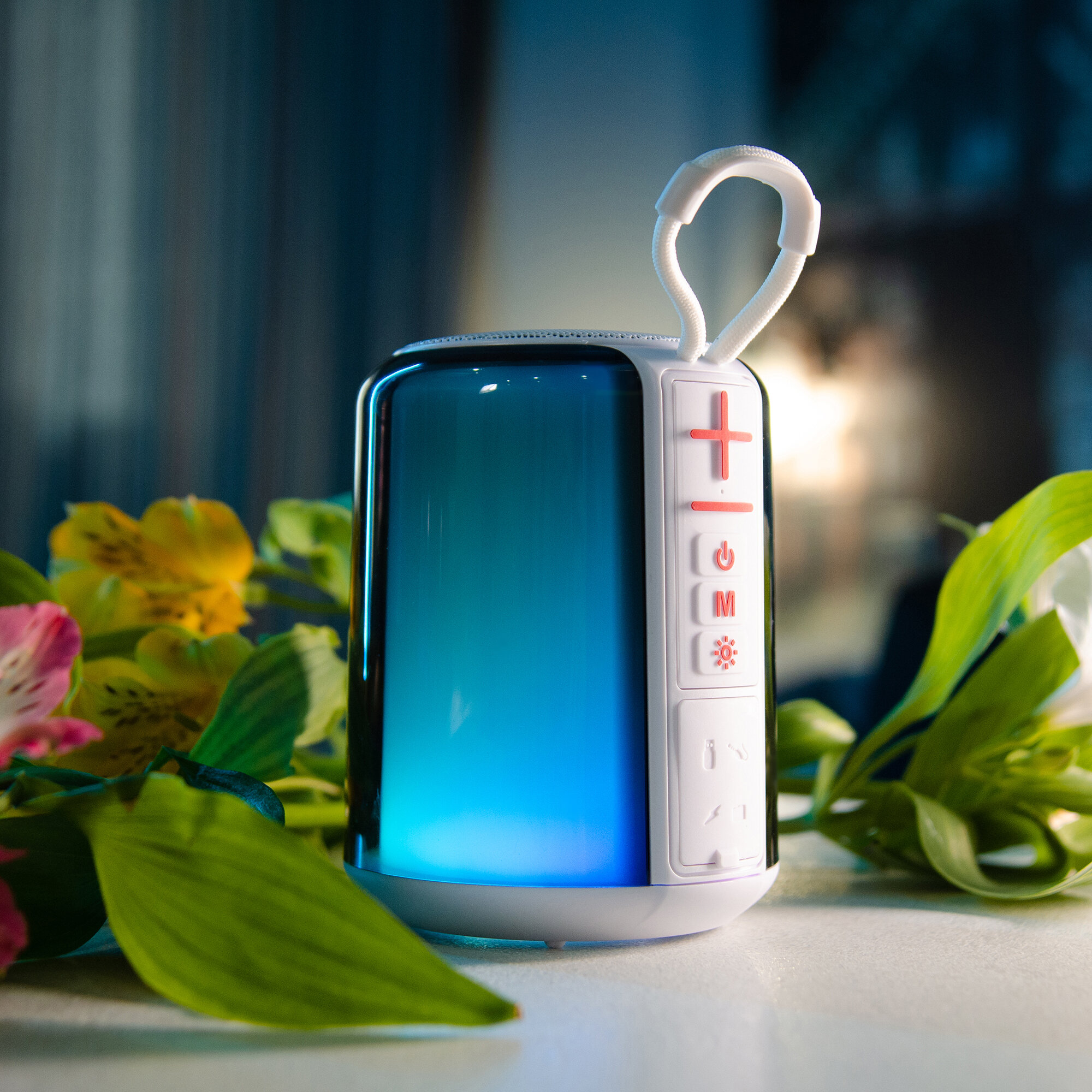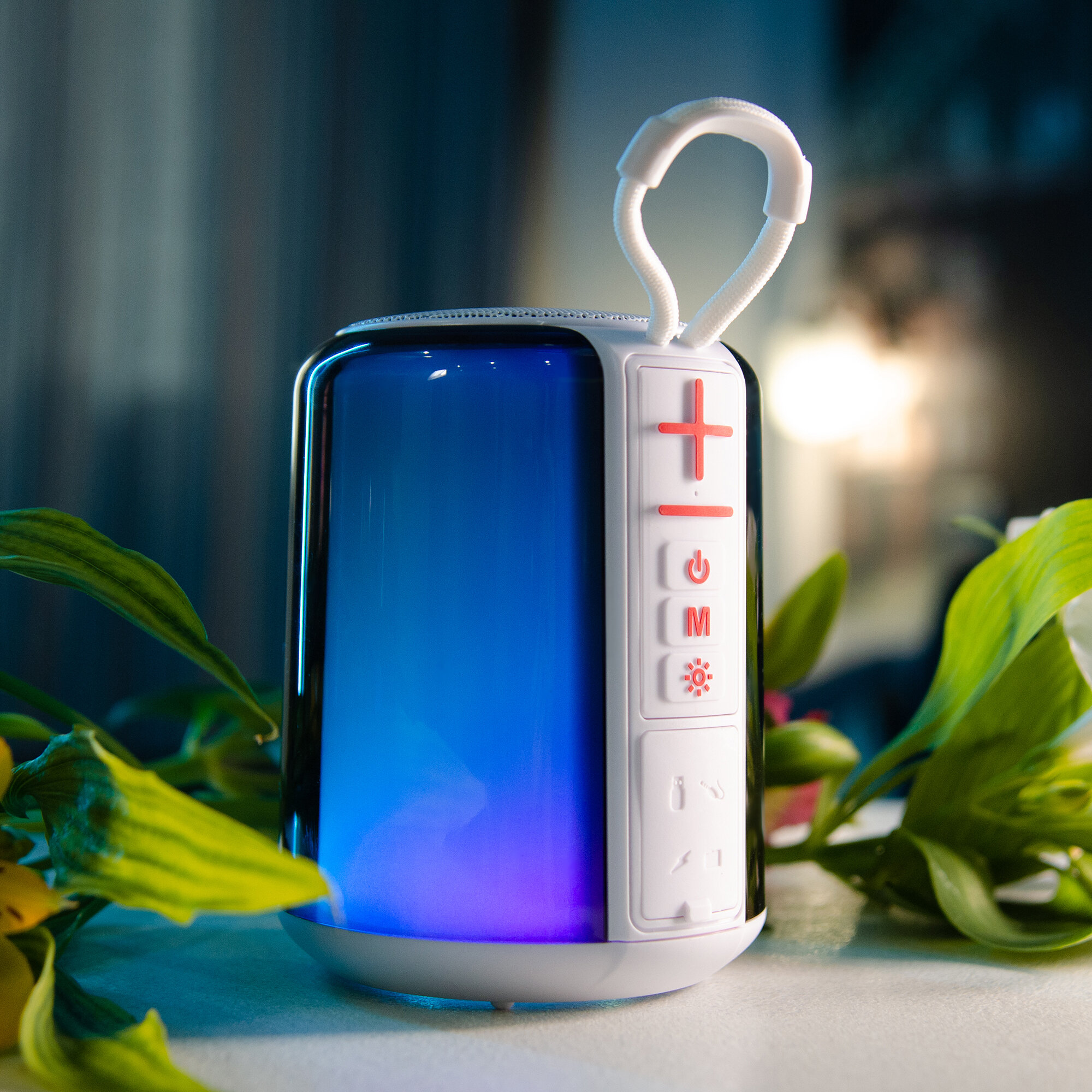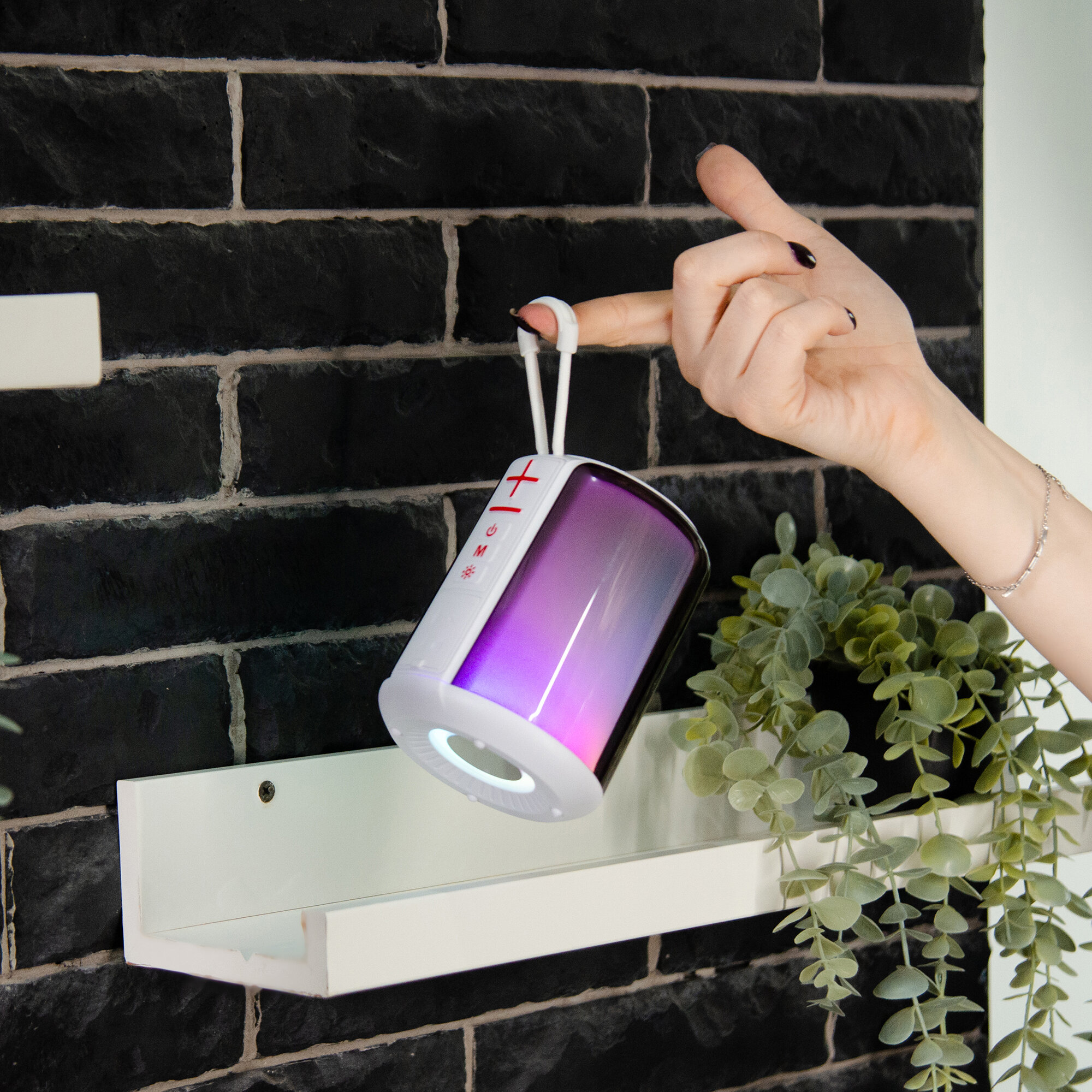-звучит на большой радиус -внизу есть силикон, чтобы она не скатывалась с поверхности -шнурочек чтобы было удобно носить, держать, для подростка в поездки самое то -удобные кнопки, регулирование вкл/выкл. |