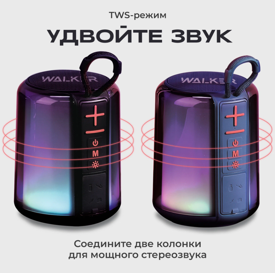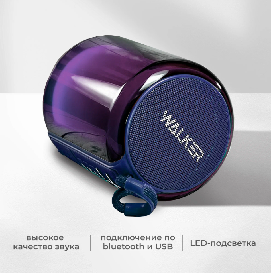 Портативная колонка, WALKER, WSP-125, 5Вт, RGB-подсветка, TWS, Bluetooth 5.3, колонка блютуз, колонка jbl, jbl колонка, bluetooth колонка, фиолетовая