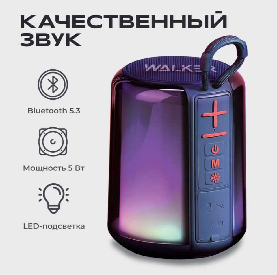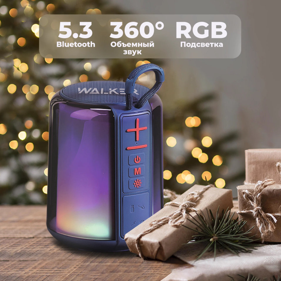 Портативная колонка, WALKER, WSP-125, 5Вт, RGB-подсветка, TWS, Bluetooth 5.3, колонка блютуз, колонка jbl, jbl колонка, bluetooth колонка, синяя