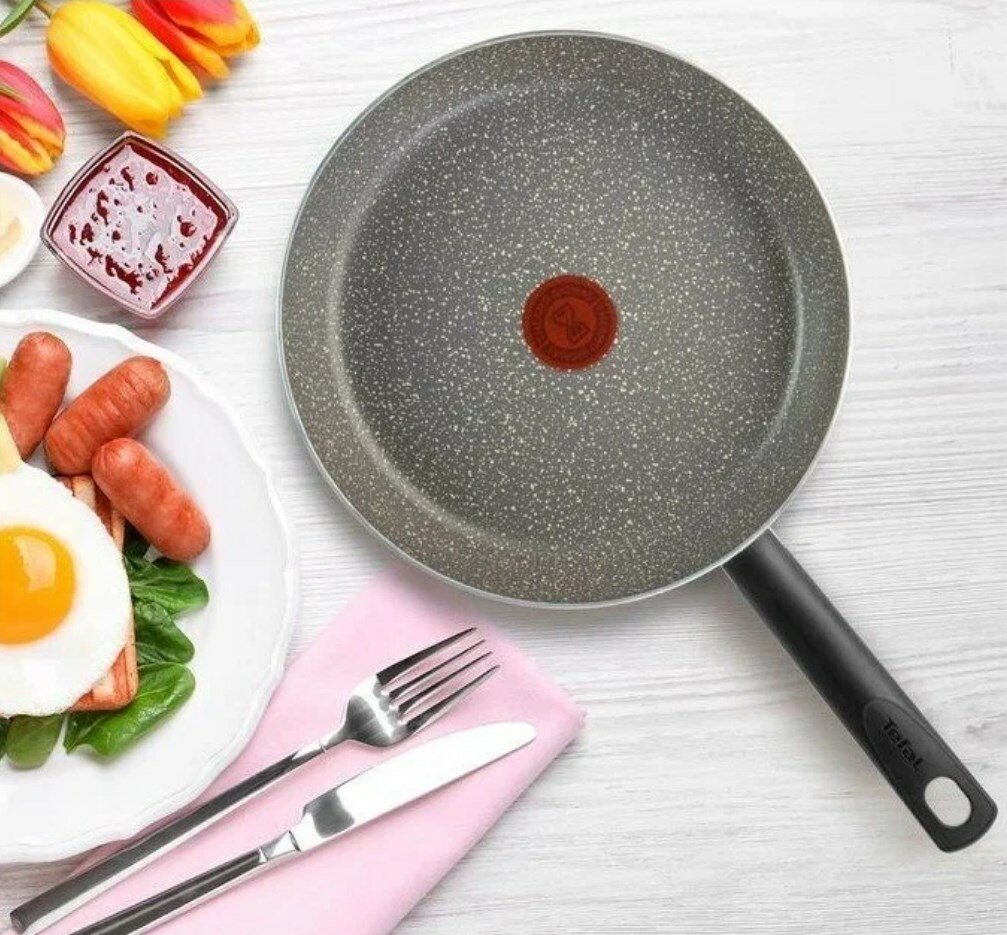Сковорода Tefal Easy Plus 04237126, диаметр 26 см, с индикатором температуры, с антипригарным покрытием, для газовых, электрических плит