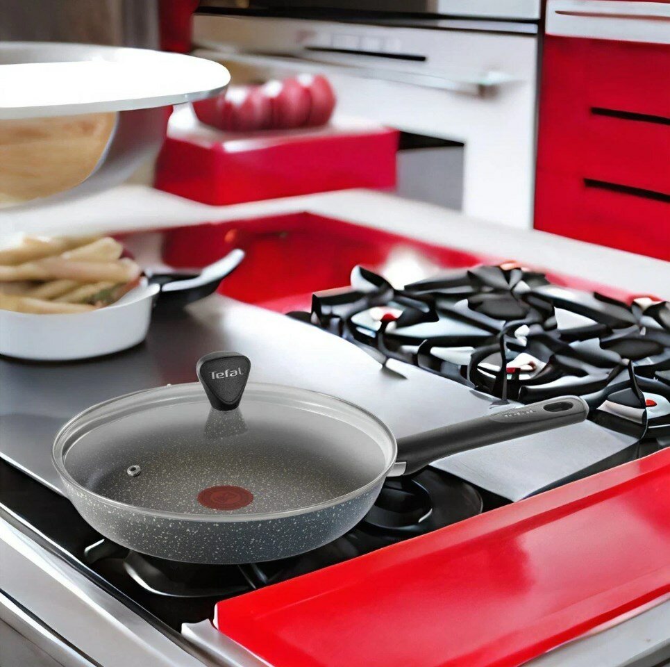 Сковорода с крышкой Tefal Natural Cook 04234928, диаметр 28 см, с индикатором температуры и антипригарным покрытием, для газовых, электрических плит