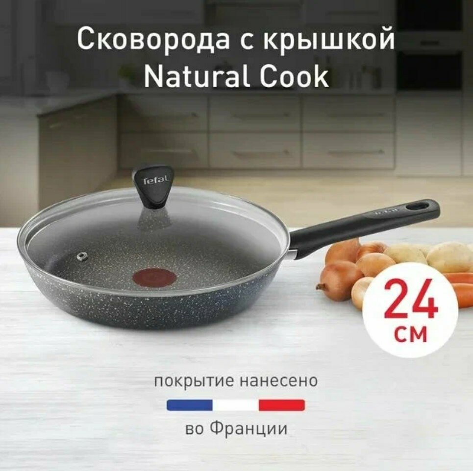Сковорода с крышкой Tefal Natural Cook 04234924, 24 см, с антипригарным покрытием, для всех типов плит кроме индукции