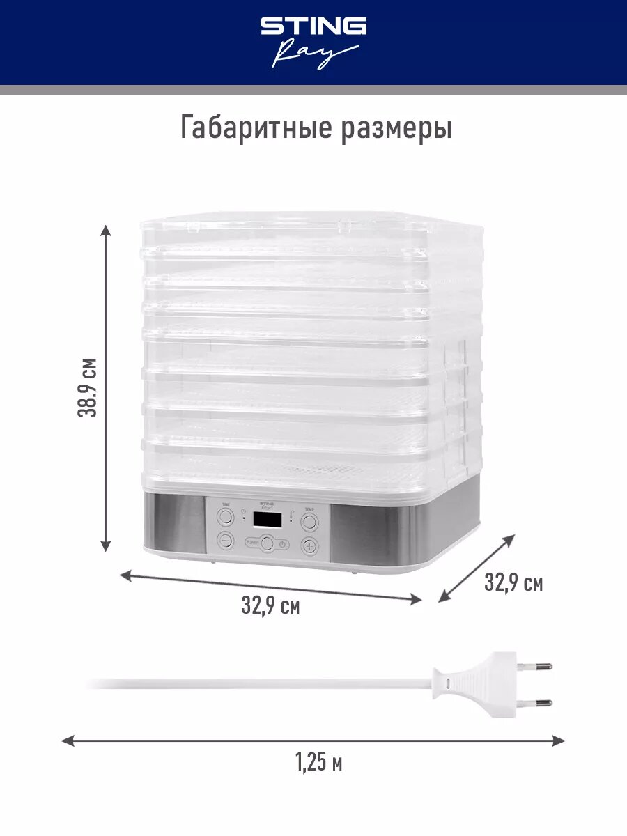 STINGRAY ST-FD723A 9 поддонов: 7+1 для ягод+1 для пастилы черный жемчуг сушилка д/фруктов,овощей