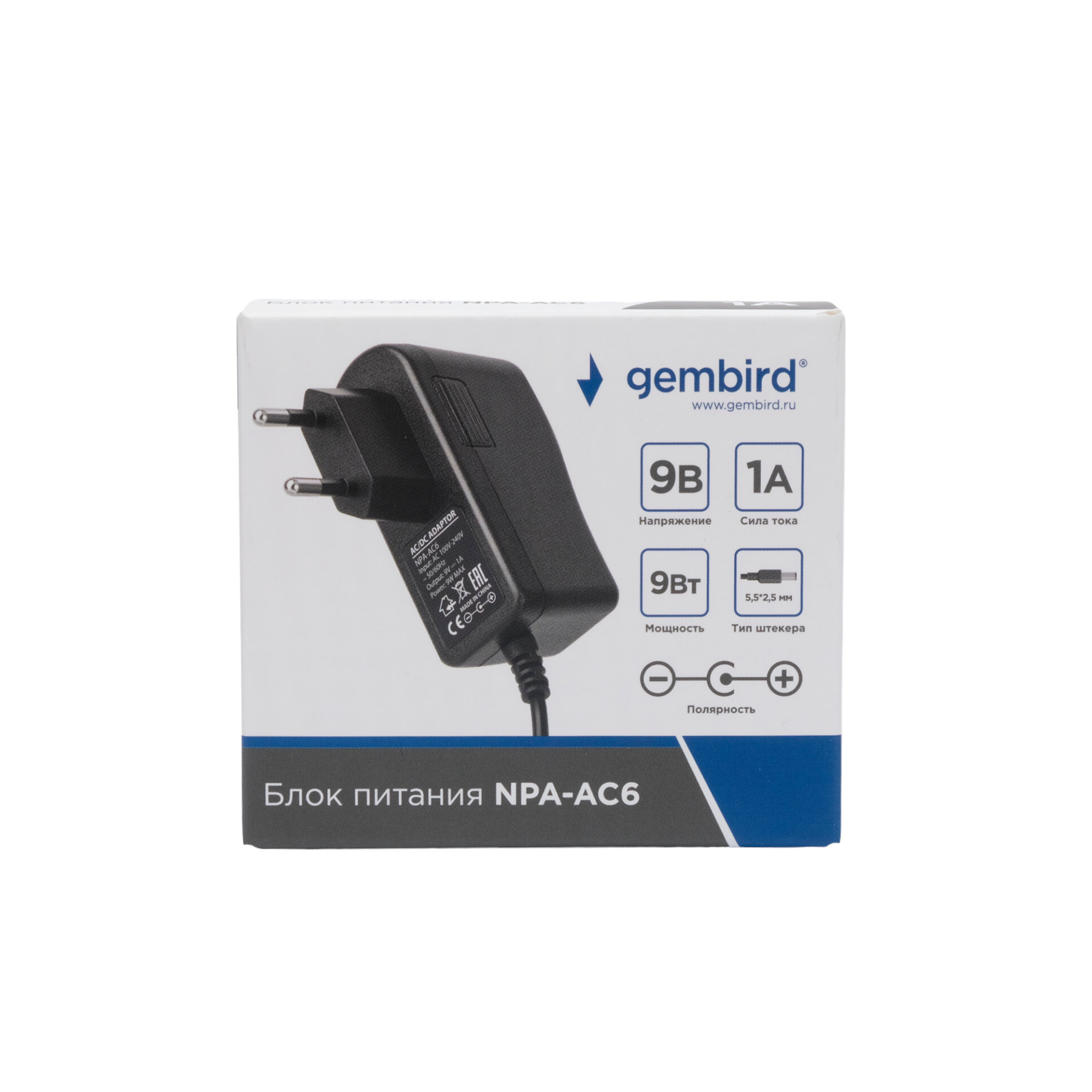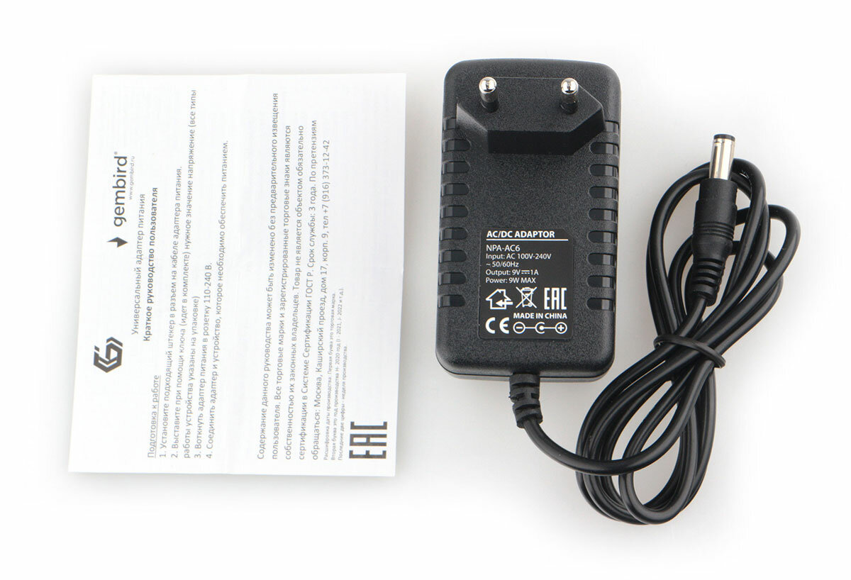 Адаптер питания Gembird NPA-AC6, 9В/1А, 1 штекер 5, 5х2,5 мм