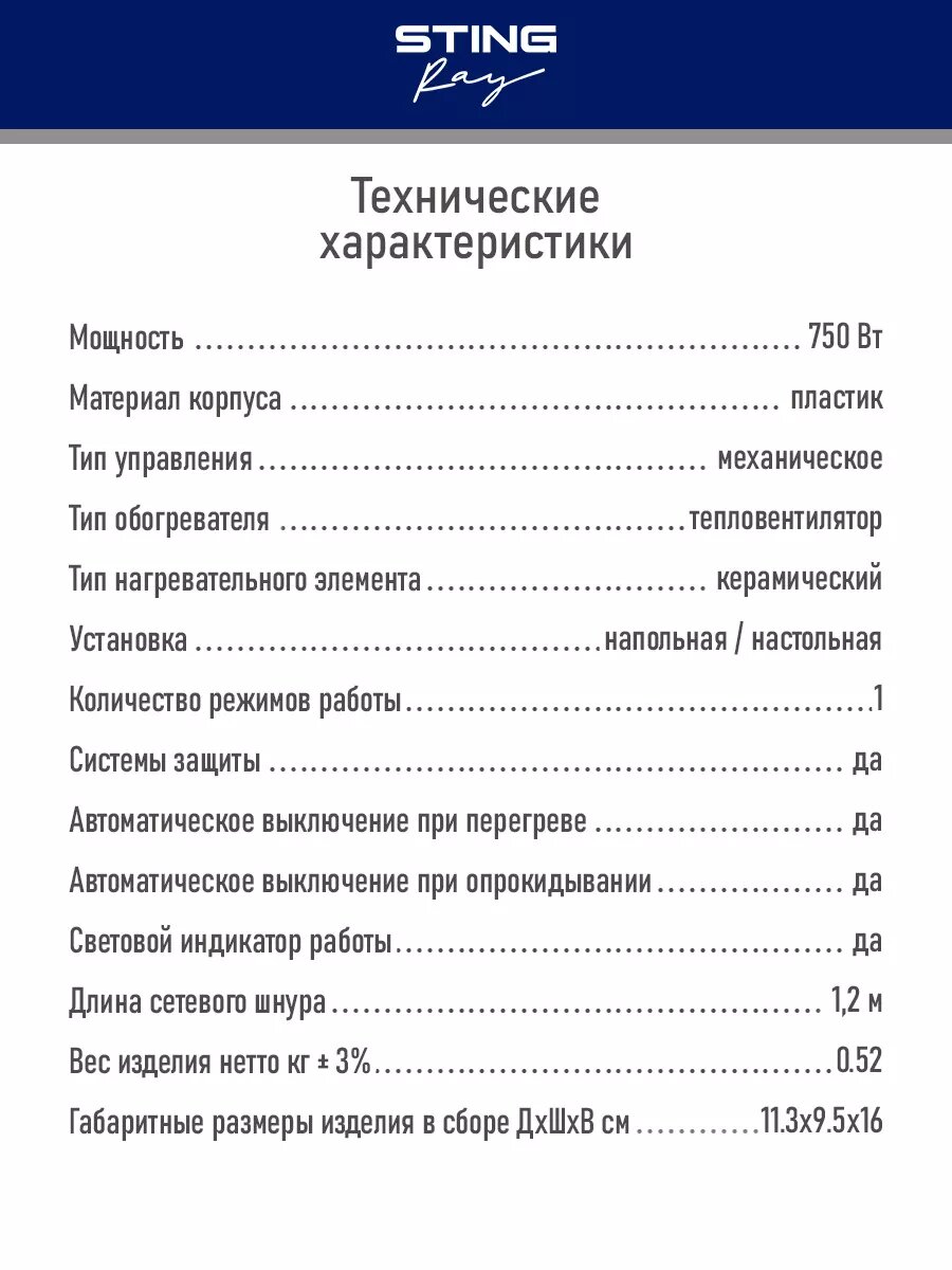 | Тип обогревателя | тепловентилятор |