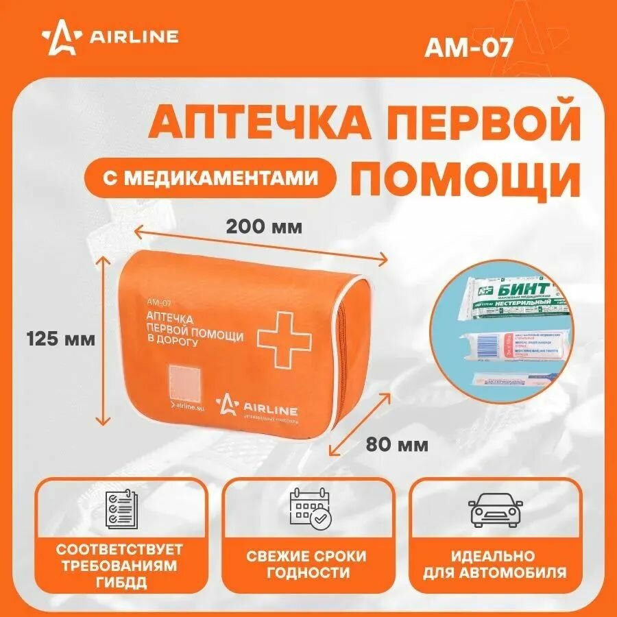 Аптечка первой помощи в дорогу, текстильный футляр (AM-07) AIRLINE интересное: