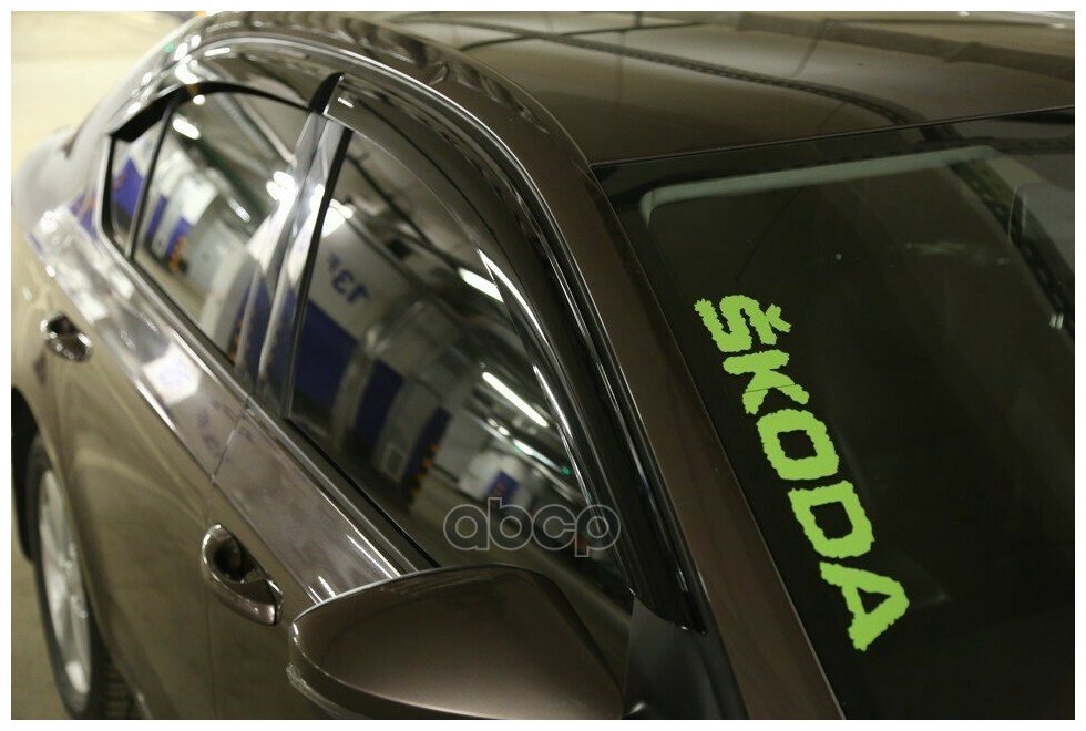 Дефлекторы окон Vinguru Skoda Octavia A7 2013- лб накладные скотч к-т 4 шт., материал литьевой полик