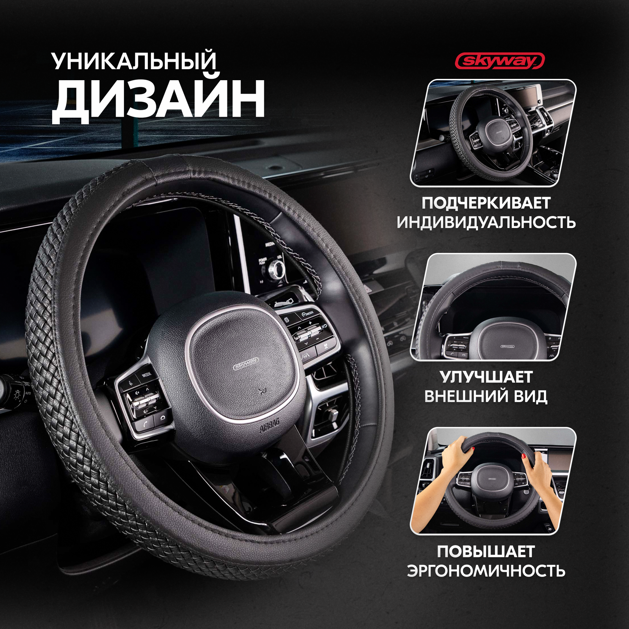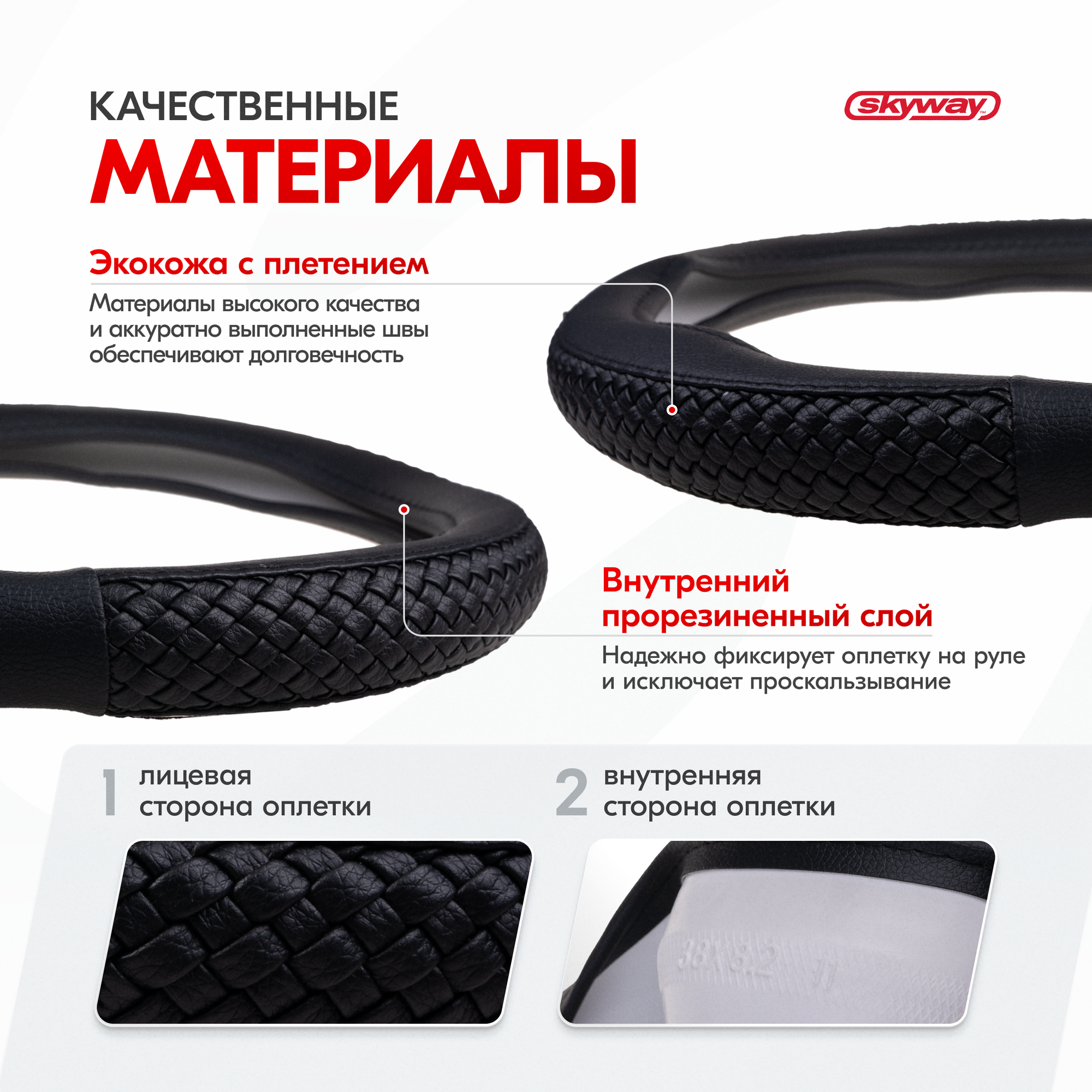 Оплетка На Руль M "Skyway" Modern-5 Эко-Кожа, Черный (С Плетением) Skyway арт. S01102052