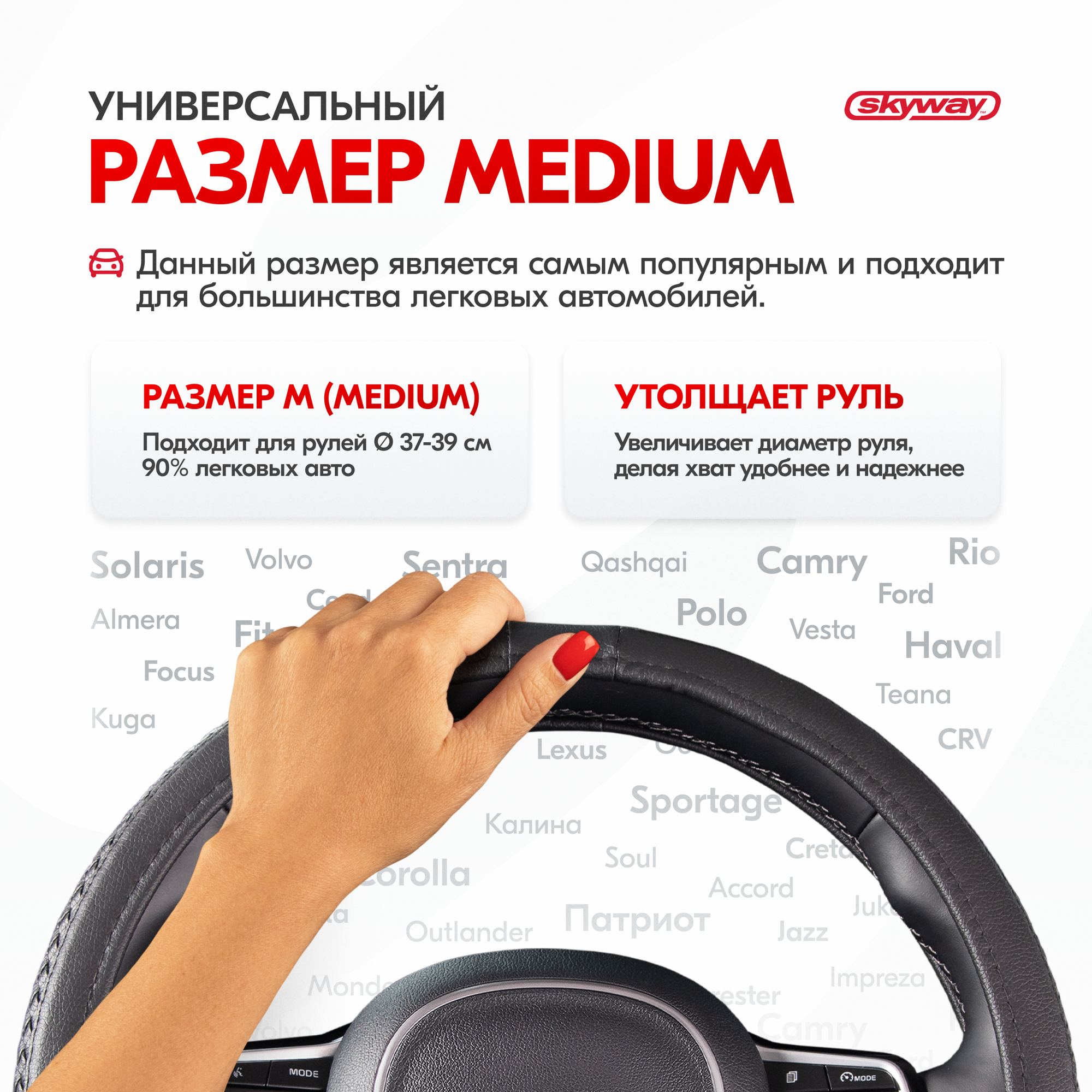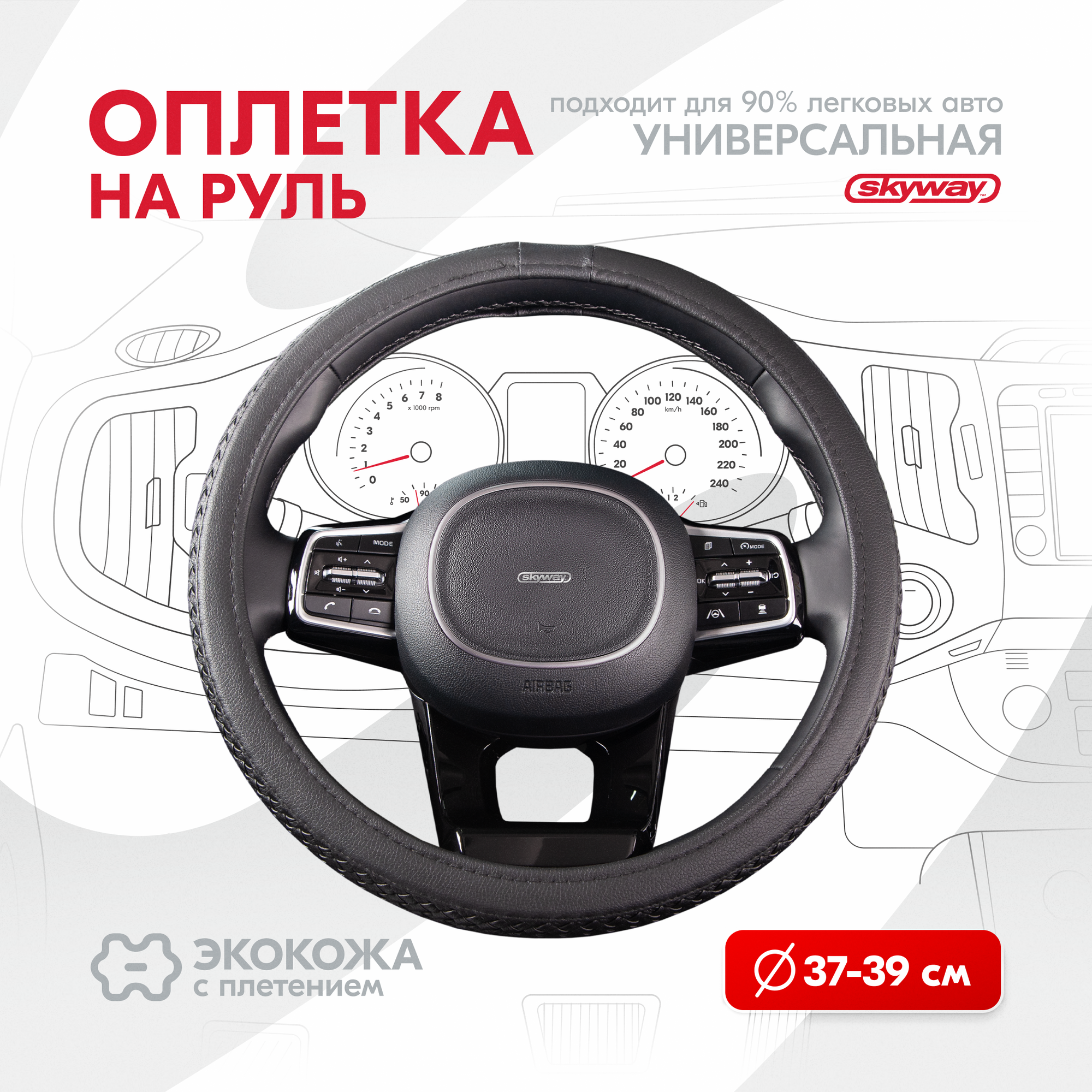 Оплетка руля SKYWAY Modern-5 M, экокожа, 37/38/39см, черный, S01102052 интересное: