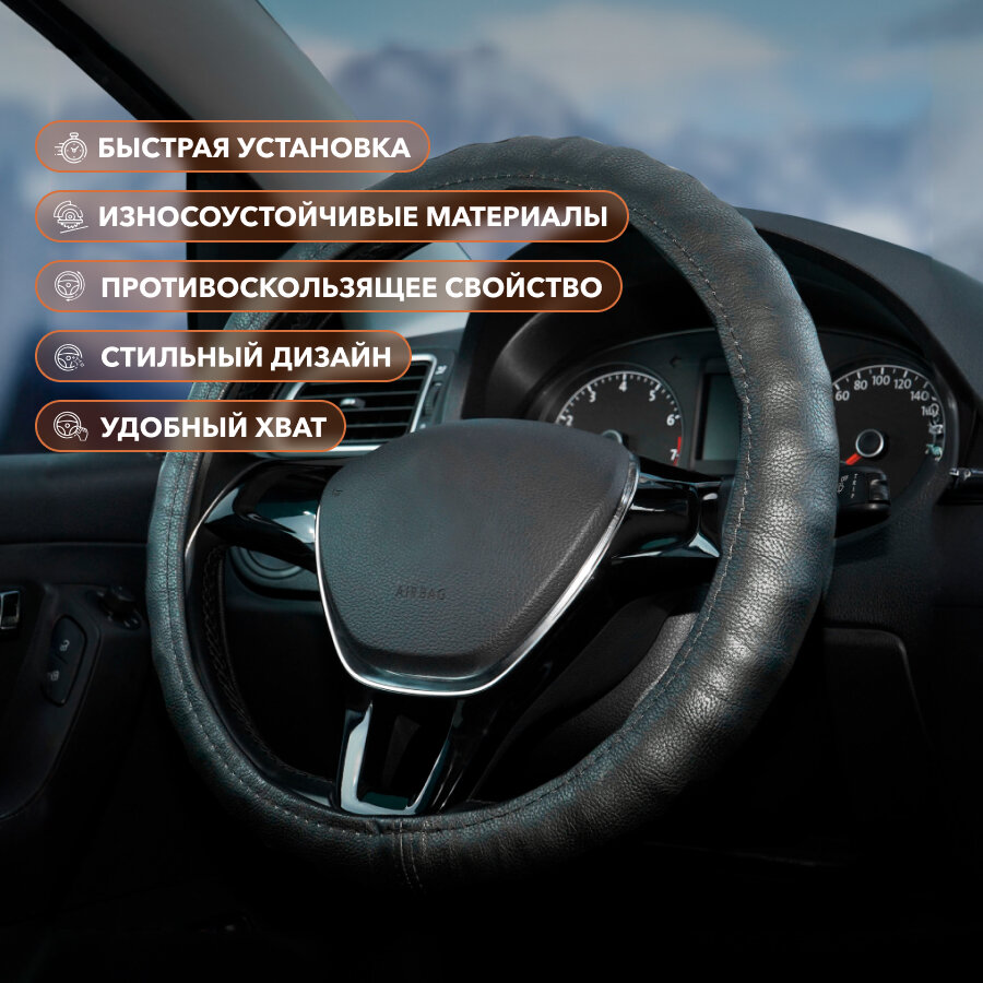 Оплетка на руль Top-12 SKYWAY M (37-39) серый экокожа, S01102501