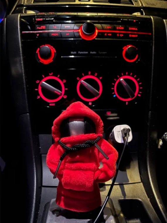 Универсальный аксессуар/чехол/худи/толстовка Autozoom на рычаг/ручку коробки переключения передач (для КПП), цвет красный, флис.