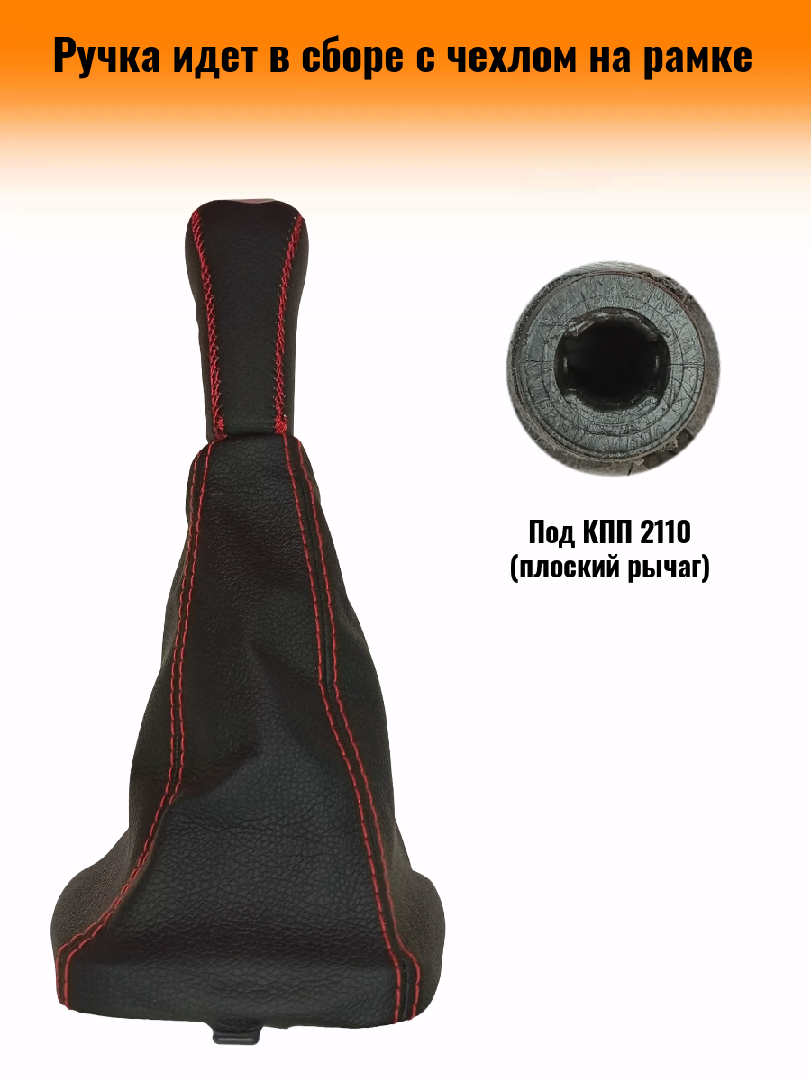 Ручка КПП на ВАЗ-2170, Лада Приора 1 (LADA Priora 1) c ВАЗ-2110 кулисой, ЛЮКС-черная вставка, черный с красной строчкой