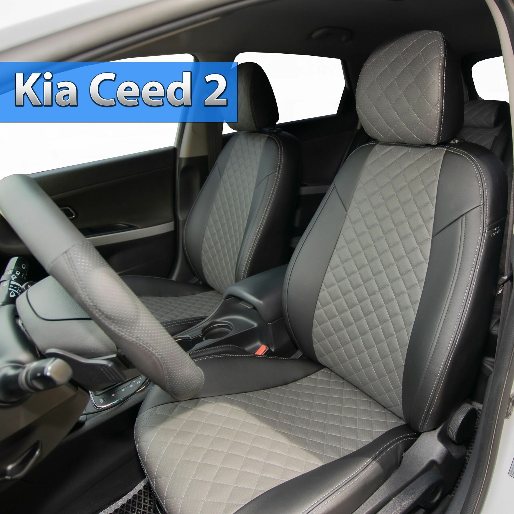 Чехлы на KIA Ceed 2 хэтчбек, универсал (2012-2018), Экокожа Ромб, Серый + Серый, Автопилот, ki-si-kcii-sese-r