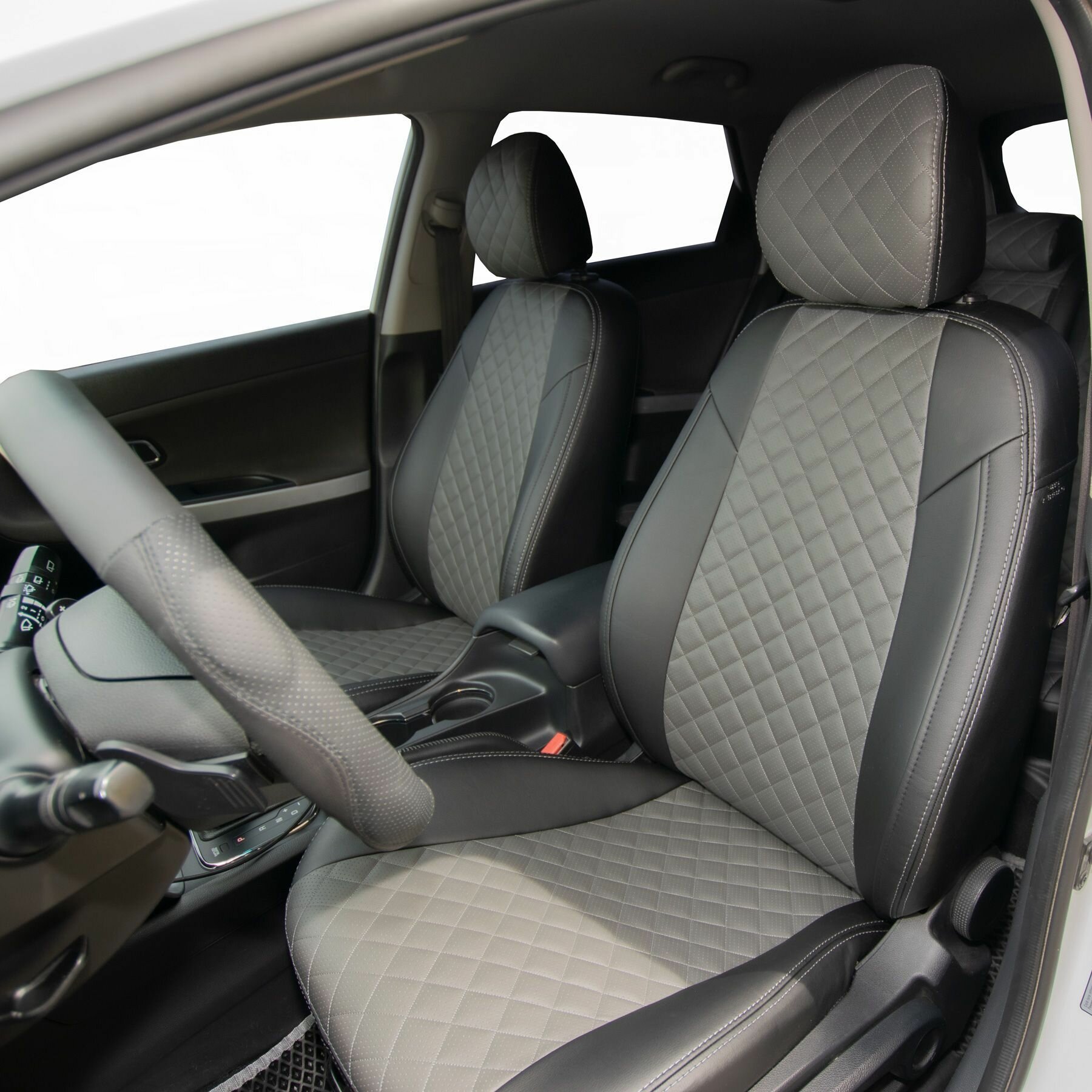 Чехлы на KIA Ceed 2 хэтчбек, универсал (2012-2018), Экокожа Ромб, Черный + Серый, Автопилот, ki-si-kcii-chese-r