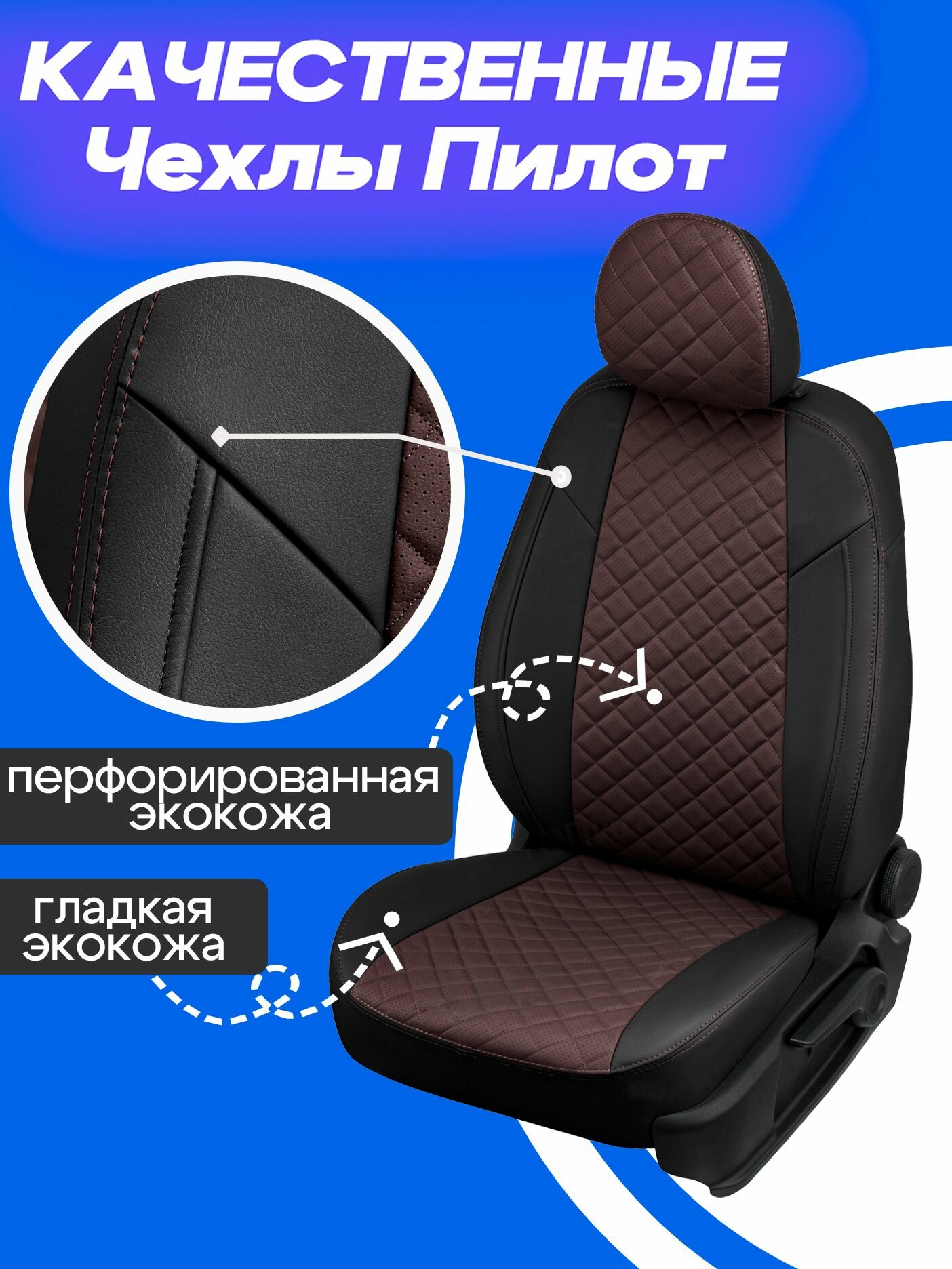 Чехлы на сиденья KIA Ceed 2 хэтчбек, универсал (2012-2018), Экокожа, шоколадный, Автопилот, ki-si-kcii-shosho-e