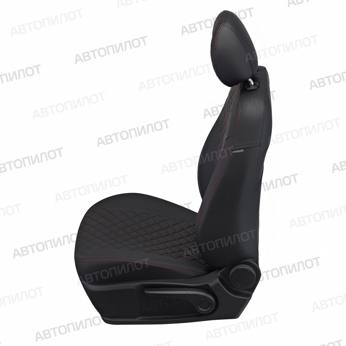 Купить Чехлы Автопилот для LADA Granta Sd/Hb / Kalina Cross / Datsun on-Do / mi-Do (40/60). Экокожа, ромб, черный, красная строчка.