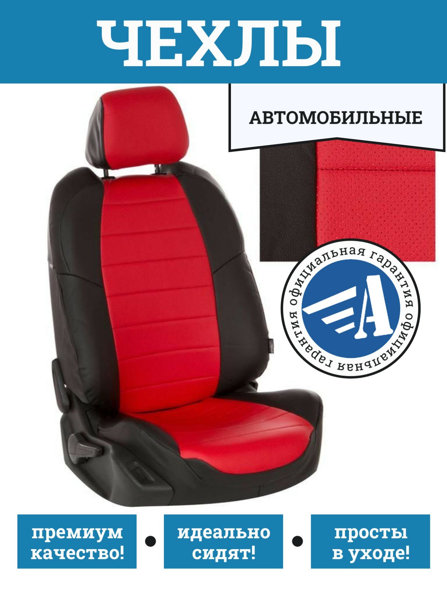 Чехлы на Лада Гранта, Калина Кросс седан, хэтчбек, Датсун Он-До, Ми-До (2011-2025) раздельная задняя спинка для сиденья авто, Пилот, Экокожа, Черный с красной вставкой