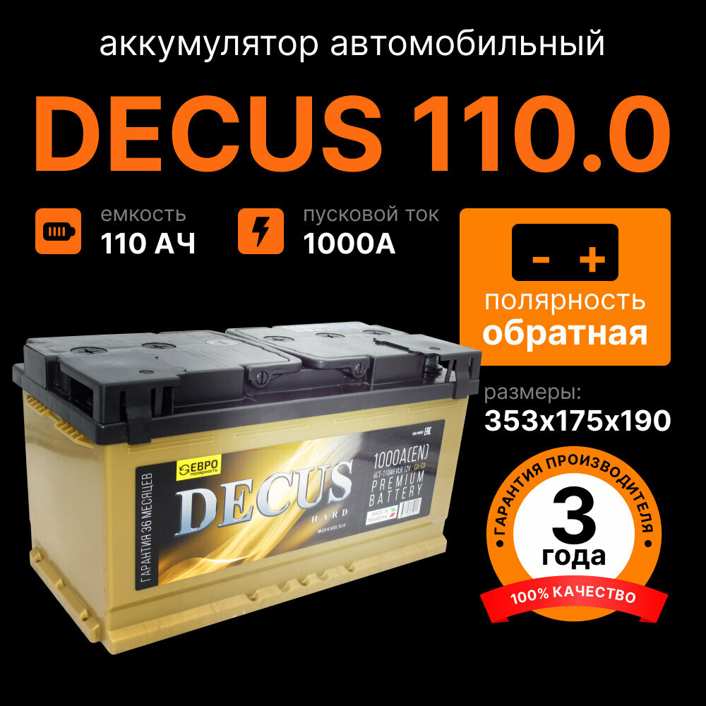 Аккумулятор DECUS 110 Ач обратная полярность интересное: