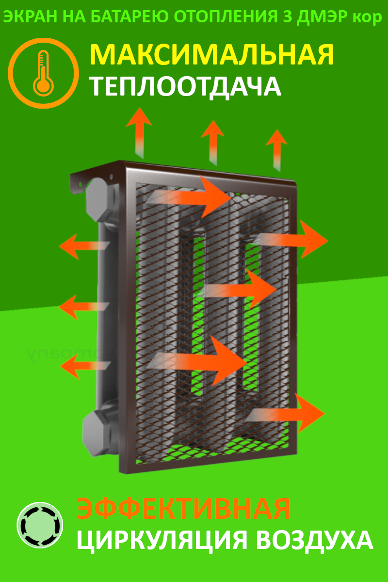 3 дмэр, Декоративный металлический экран на радиатор 3-х секционный