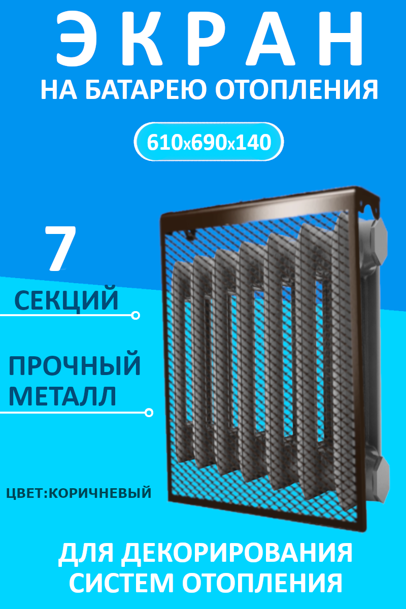 7 дмэр кор, Декоративный металлический экран на радиатор 7-и секционный, коричневый