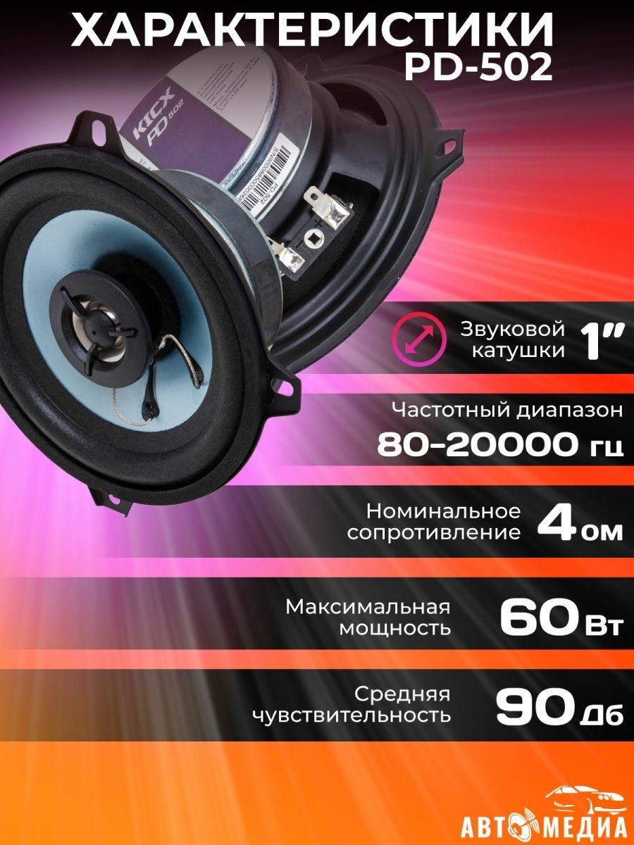 Колонки автомобильные KICX PD-502, 13 см (5 дюйм.), комплект 2 шт. [9000885]
