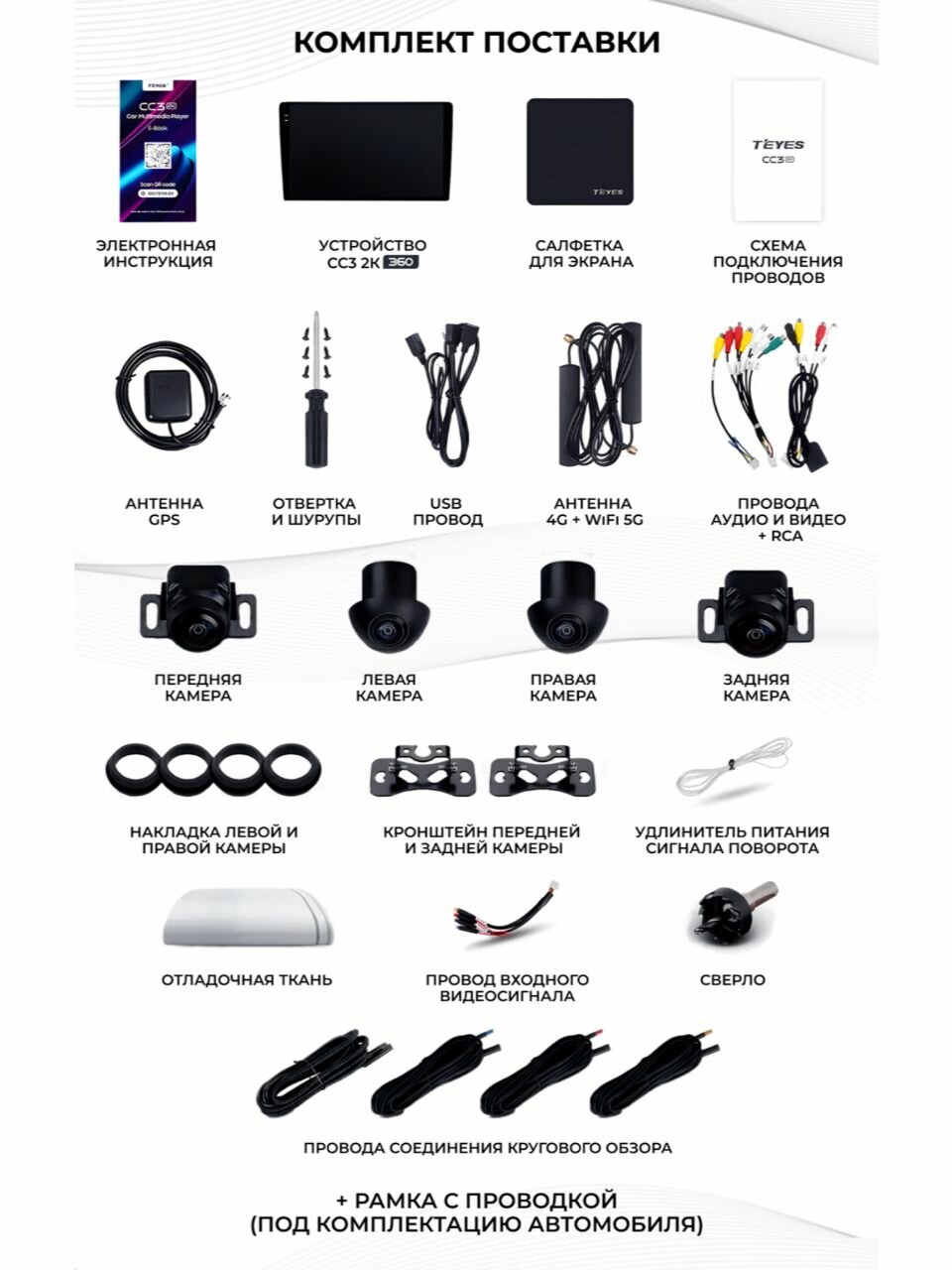 | Подробная комплектация | Головное устройство Рамка для установки в штатное место Комплект необходимых проводов Схема подключения проводов Антенна GPS+Антенна 4G+Антенна 5G 3 USB провода Шурупы и отвертка Салфетка из микрофибры Электронная инструкция |