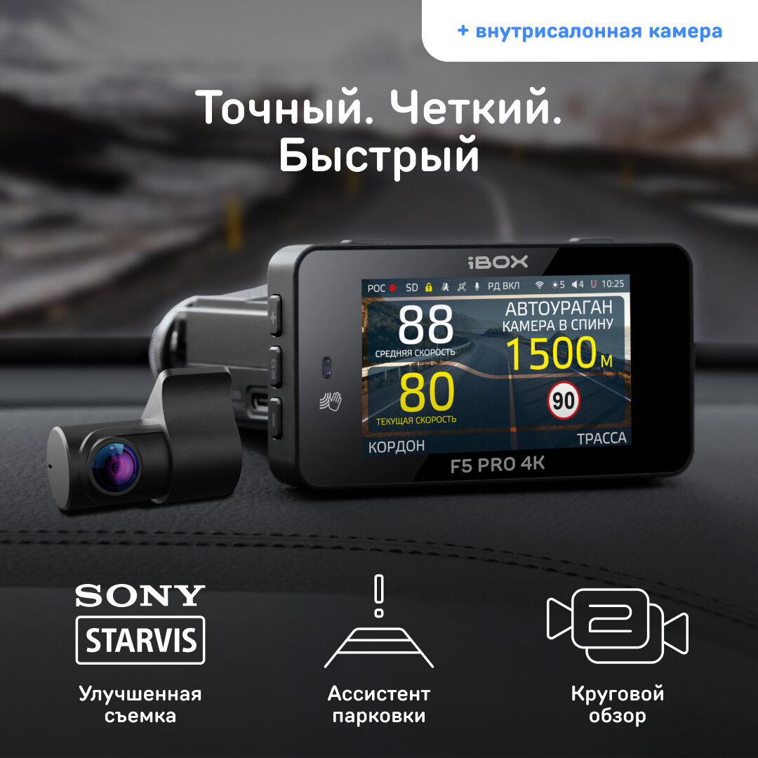 Видеорегистратор с радар-детектором iBOX F5 PRO 4K + Внутрисалонная камера RC FHD6