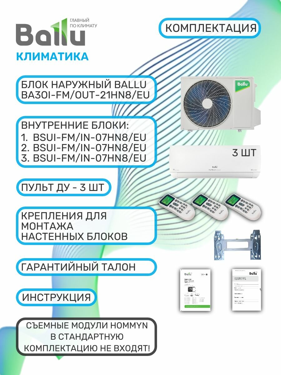 Инверторная мульти сплит-система Ballu Platinum Evolution на 3 комнаты BSUI-FM/in-07+07+07 HN8/EU BA3OI-FM/out-21HN8/EU интересное: