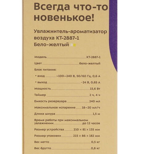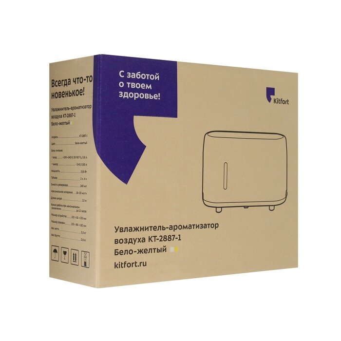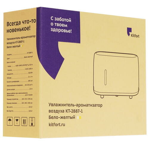 Kitfort Увлажнитель воздуха Kitfort КТ-2887-1, ультразвуковой, 15.6 Вт, 0.24 л, жёлто-белый интересное: