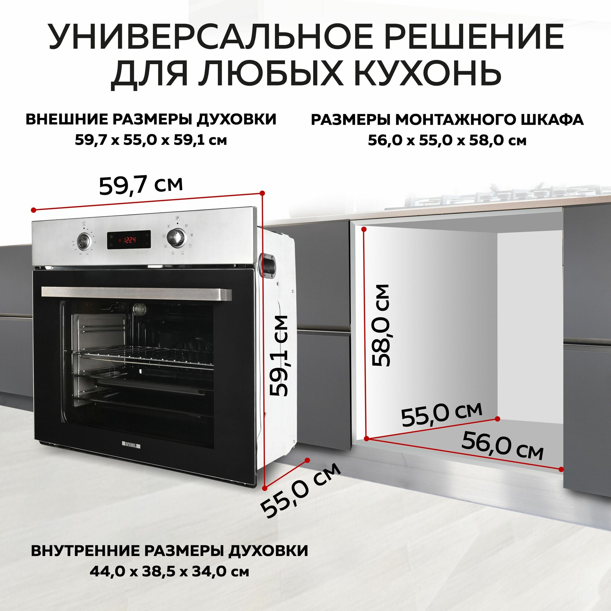 СохранитьGFGRIL Духовой шкаф электрический встраиваемый GF-EO500IN, духовка 57 л цвет нержавеющая сталь интересное: