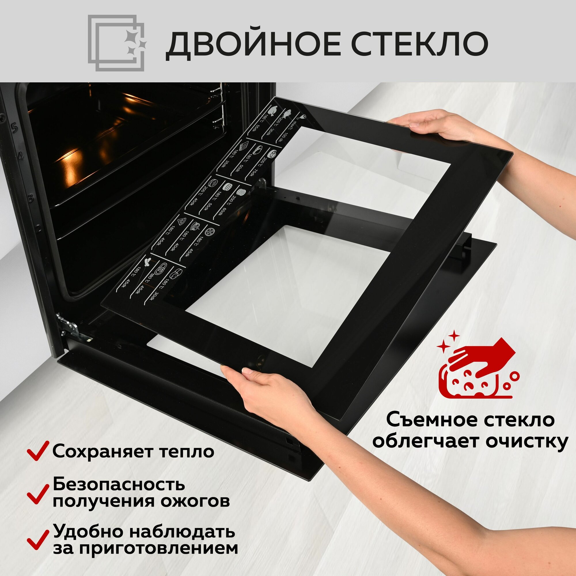 | Число стекол дверцы духовки | два |